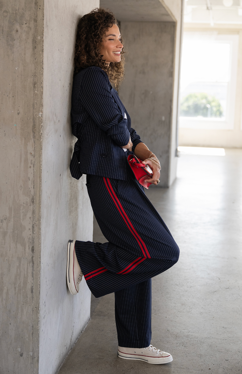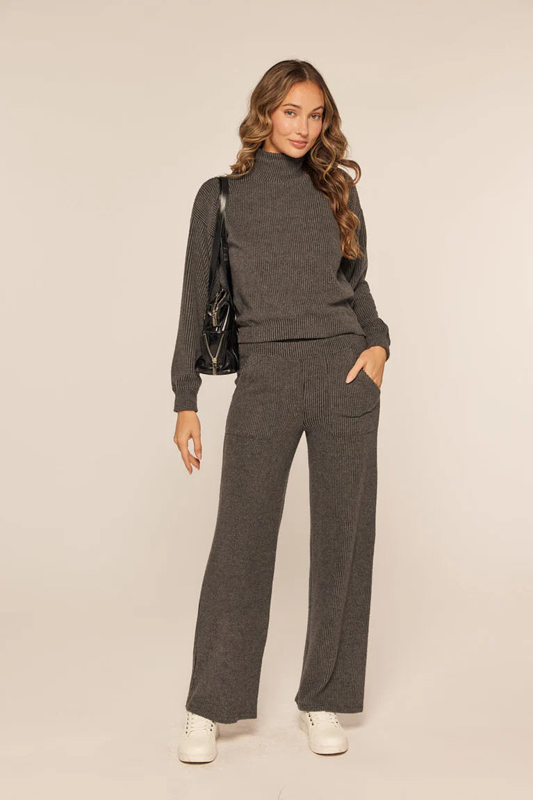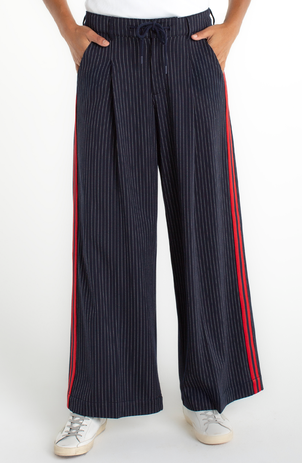 Pull On Wide Leg Contrast Side Panel Knit Pant