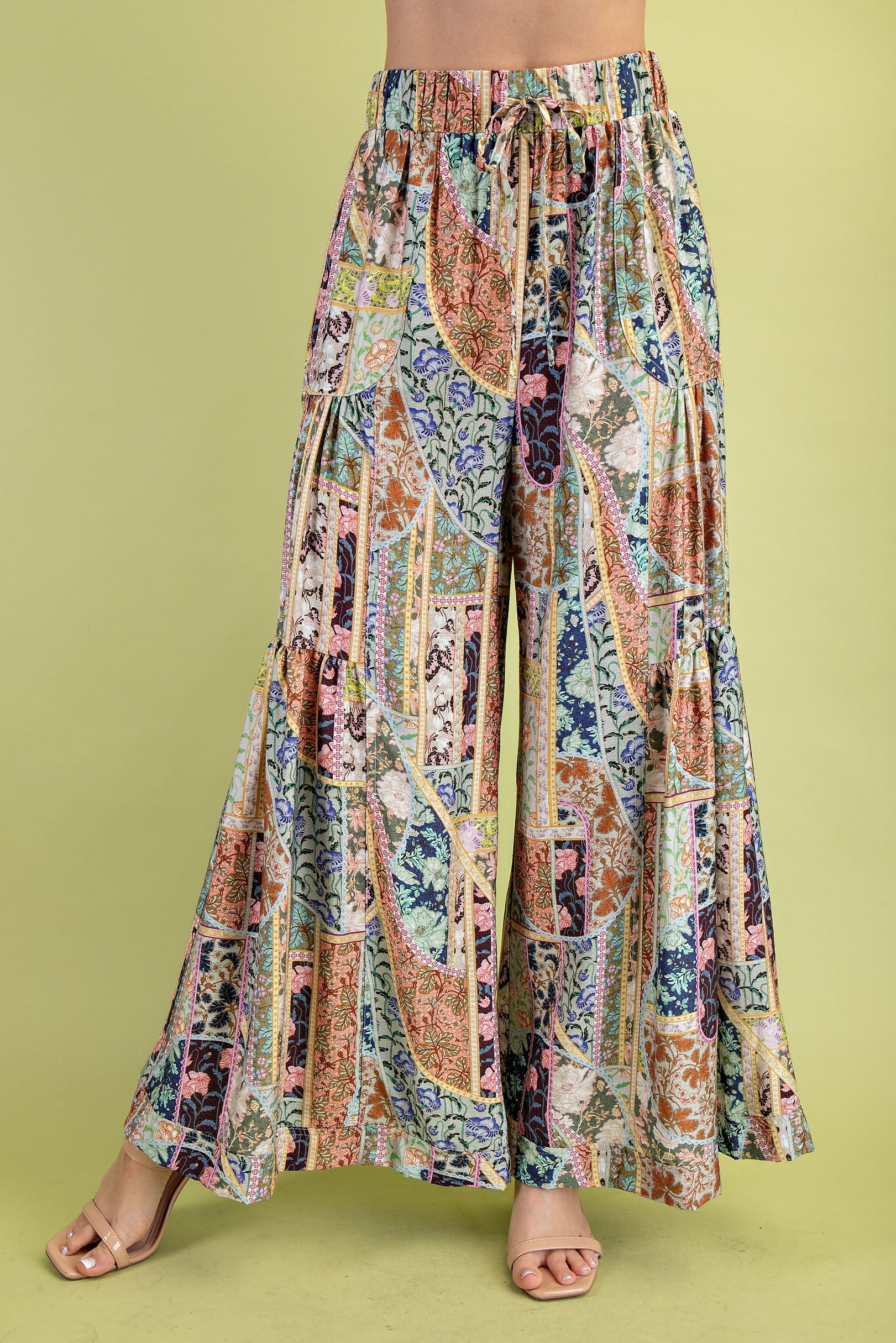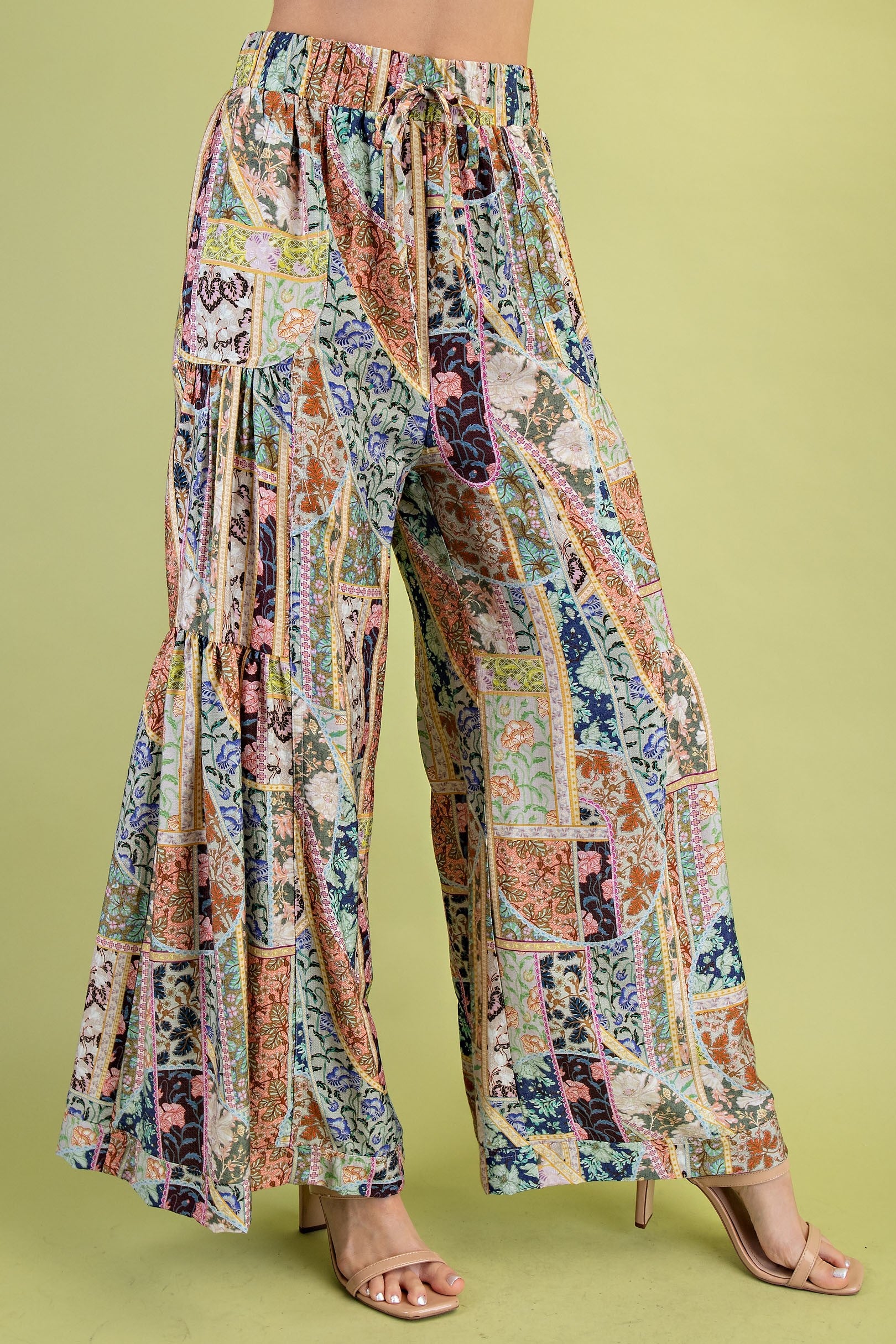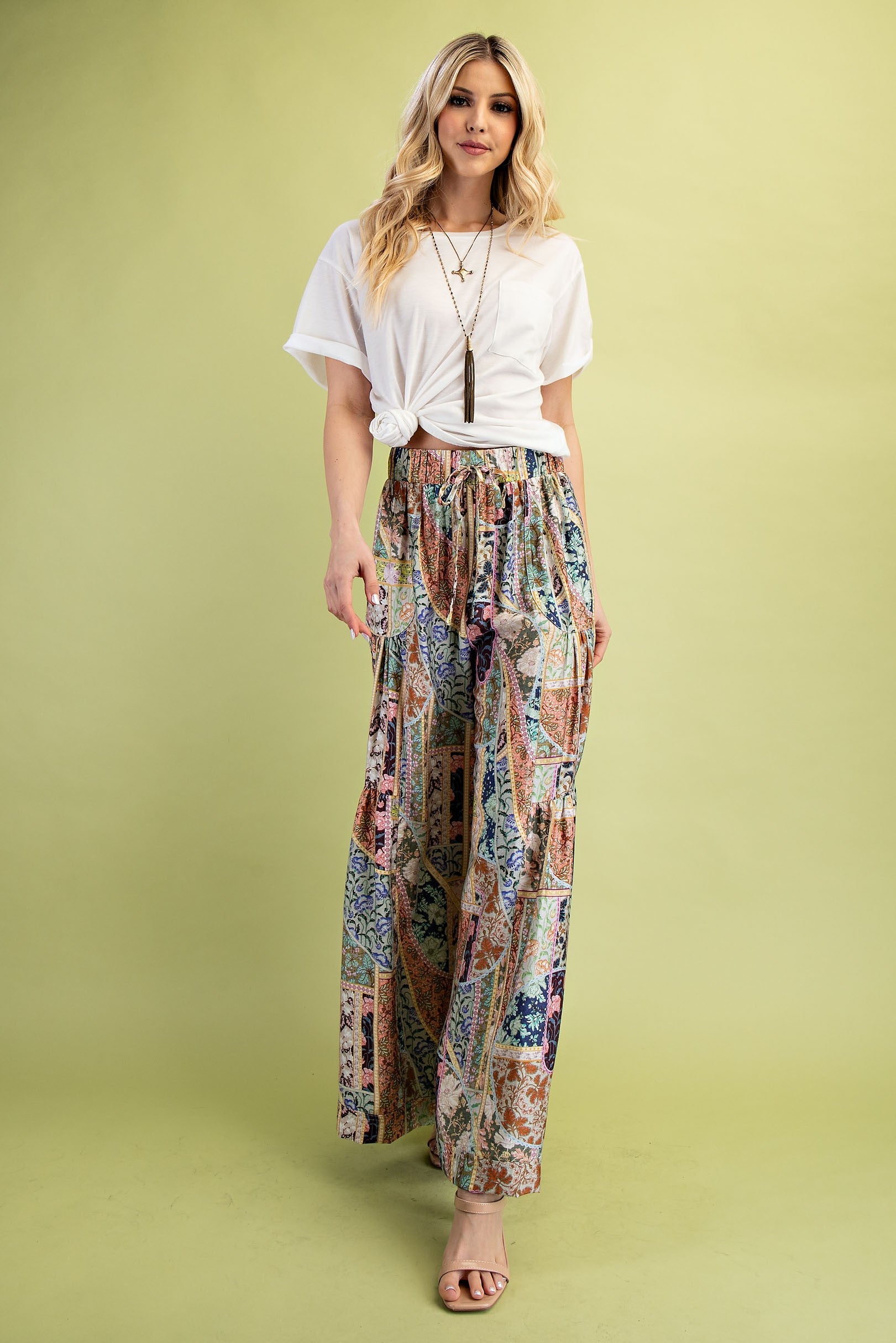 Pull On Wide Leg Contrast Side Panel Knit Pant
