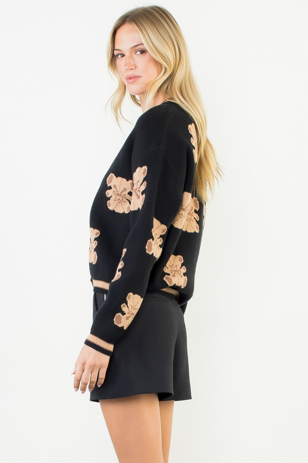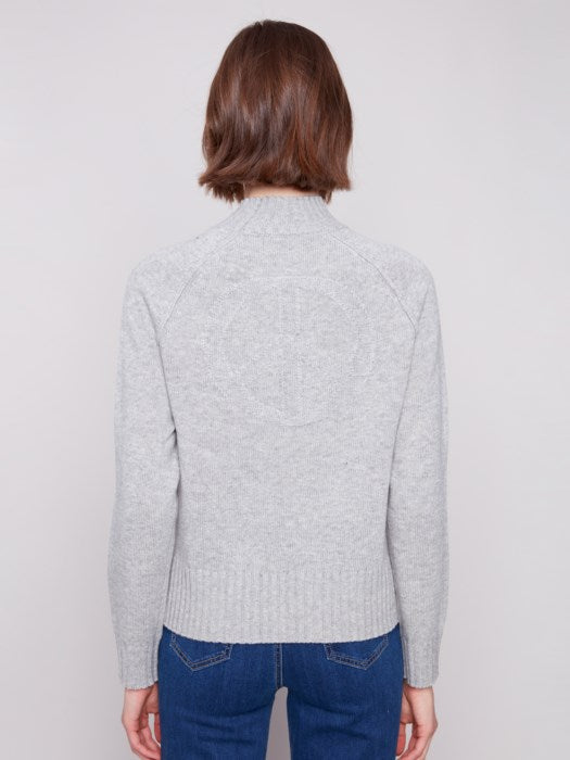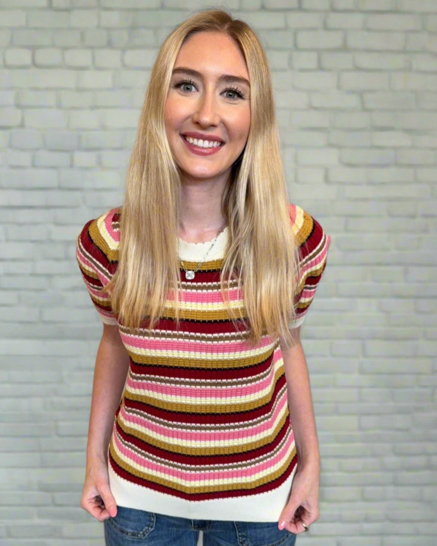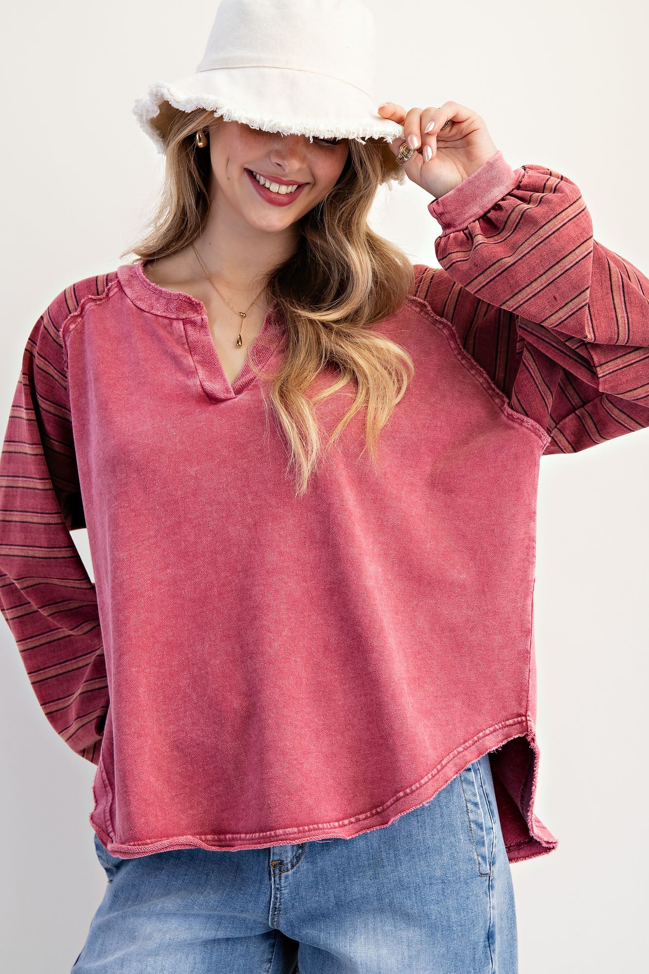 High Collar Half Button Long Sleeve Striped Sweatshirt