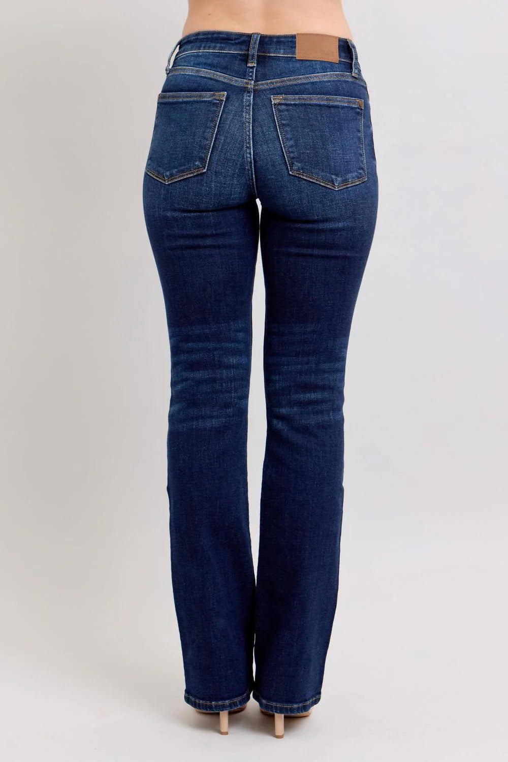 Classic and versatile, these mid-rise bootcut jeans are designed to flatter every figure. With just the right amount of stretch, a dark wash finish, and timeless bootcut silhouette, they’re the perfect go-to denim for everyday wear.