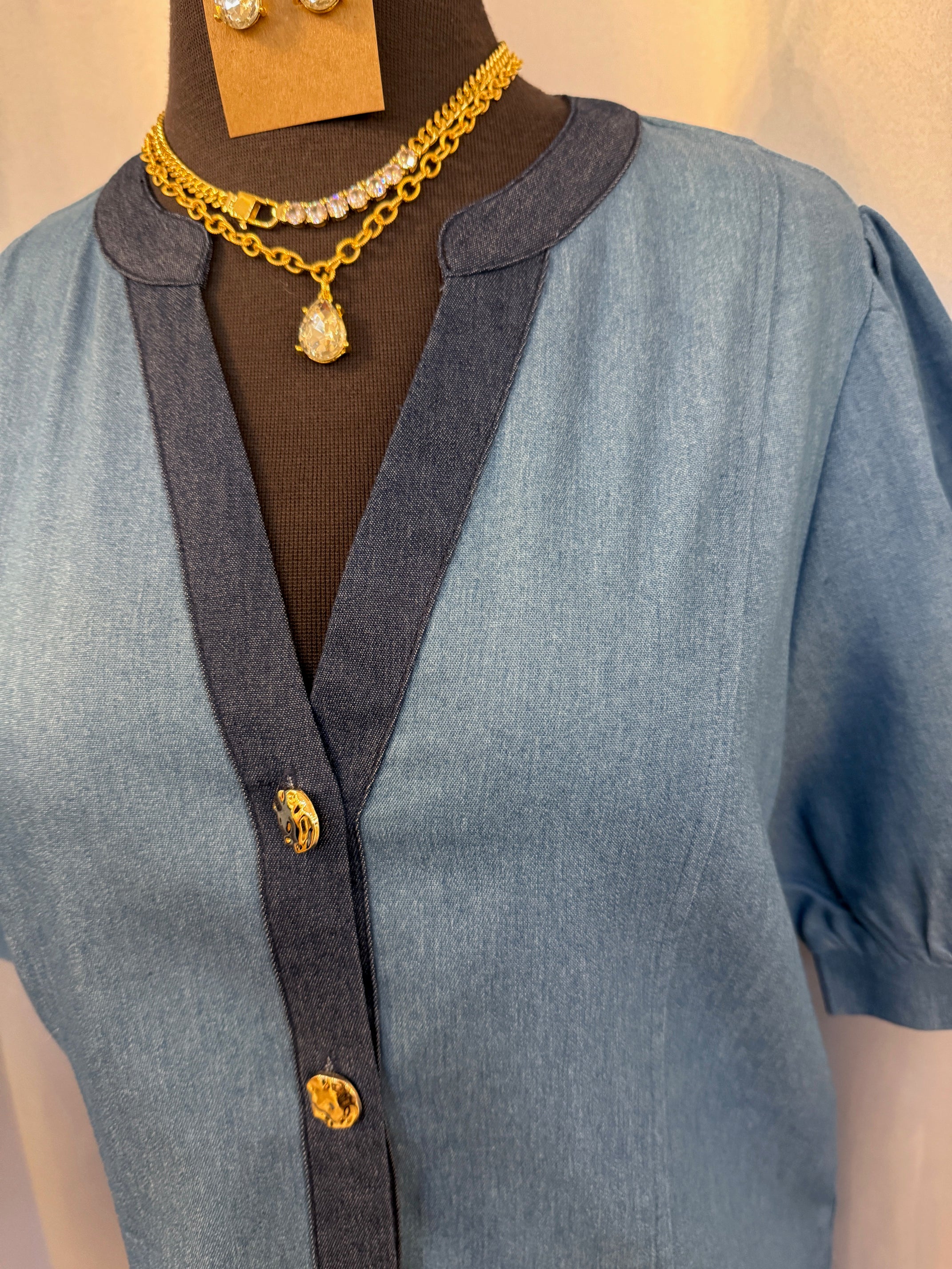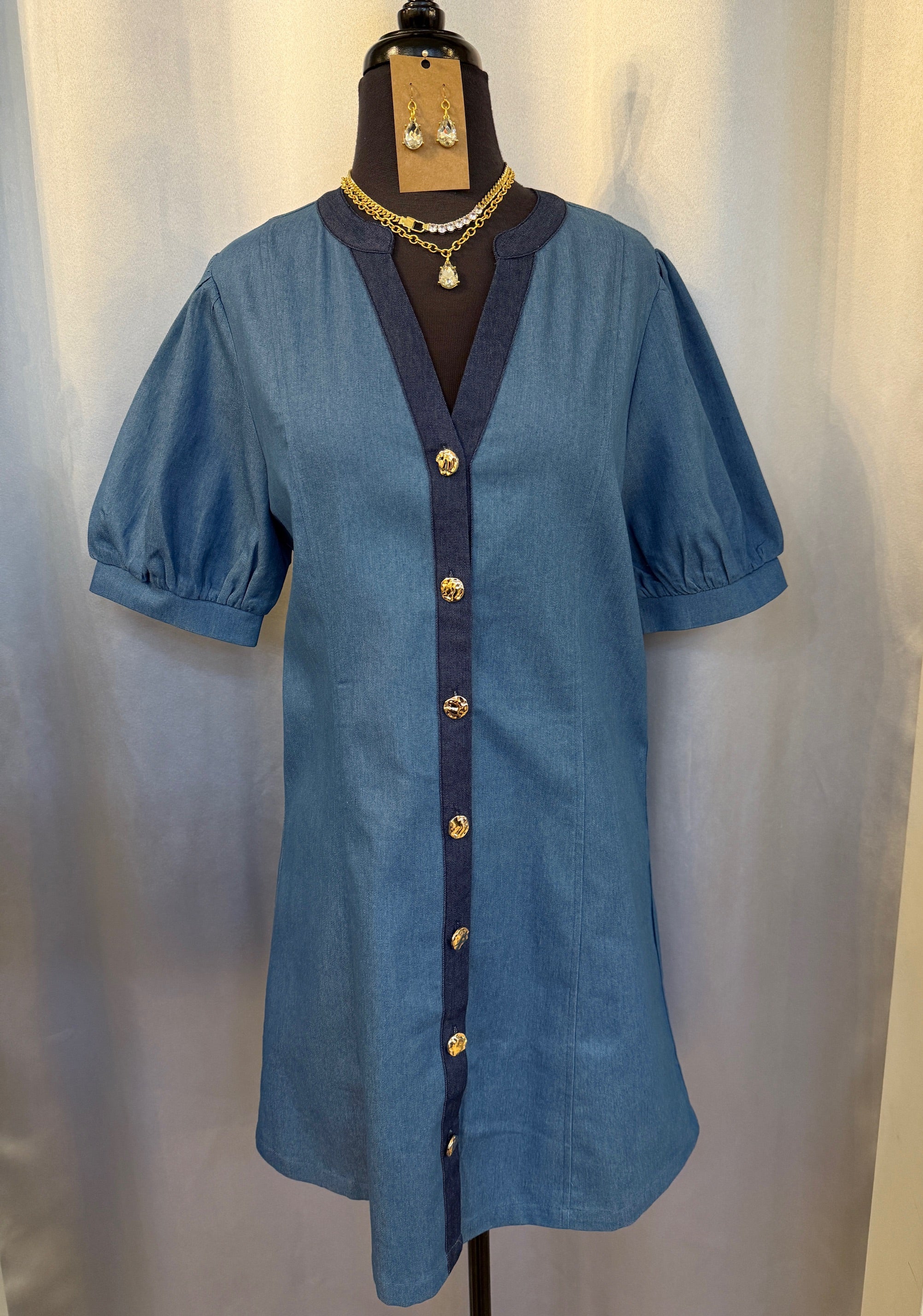 Short Sleeve Denim Button Up Dress