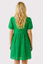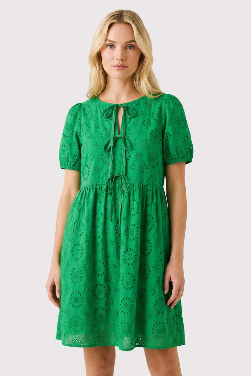 Keyhole tie ribbon neck puff short sleeve dress