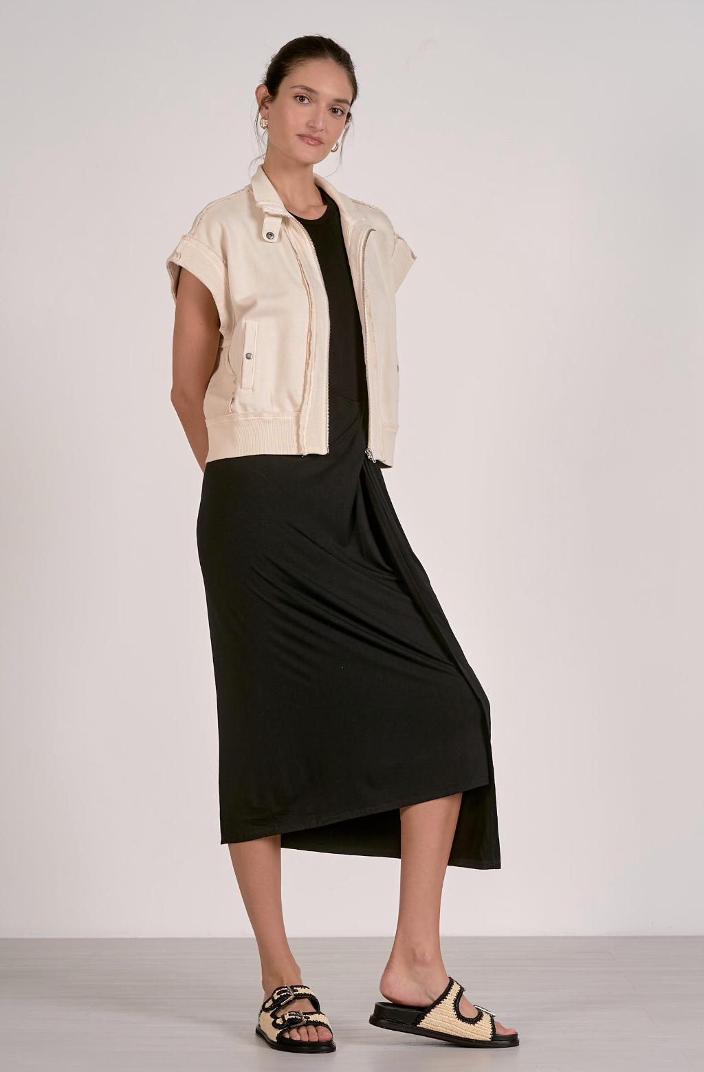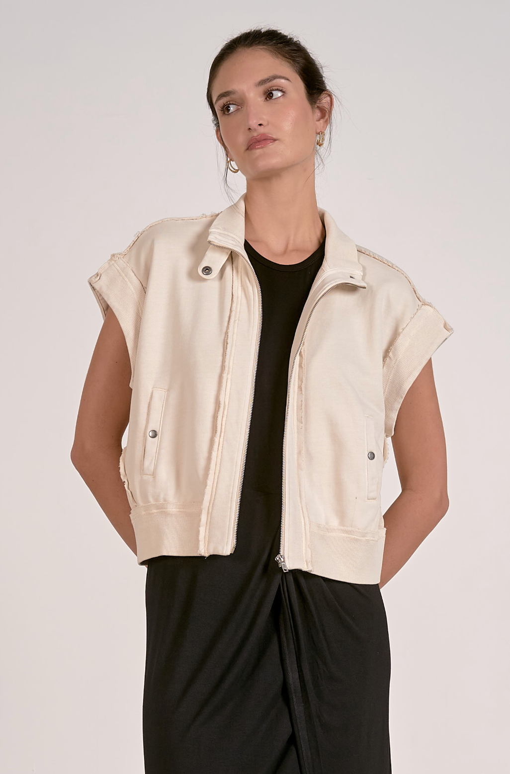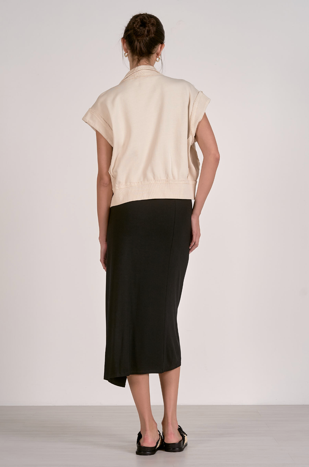 Fleece & Soft Knit Rib Mixed Half Zip Up Hoodie