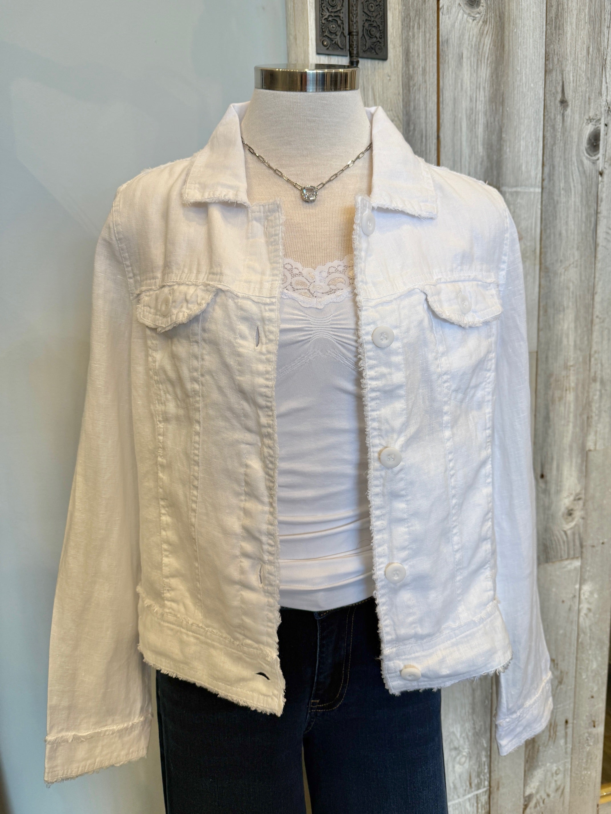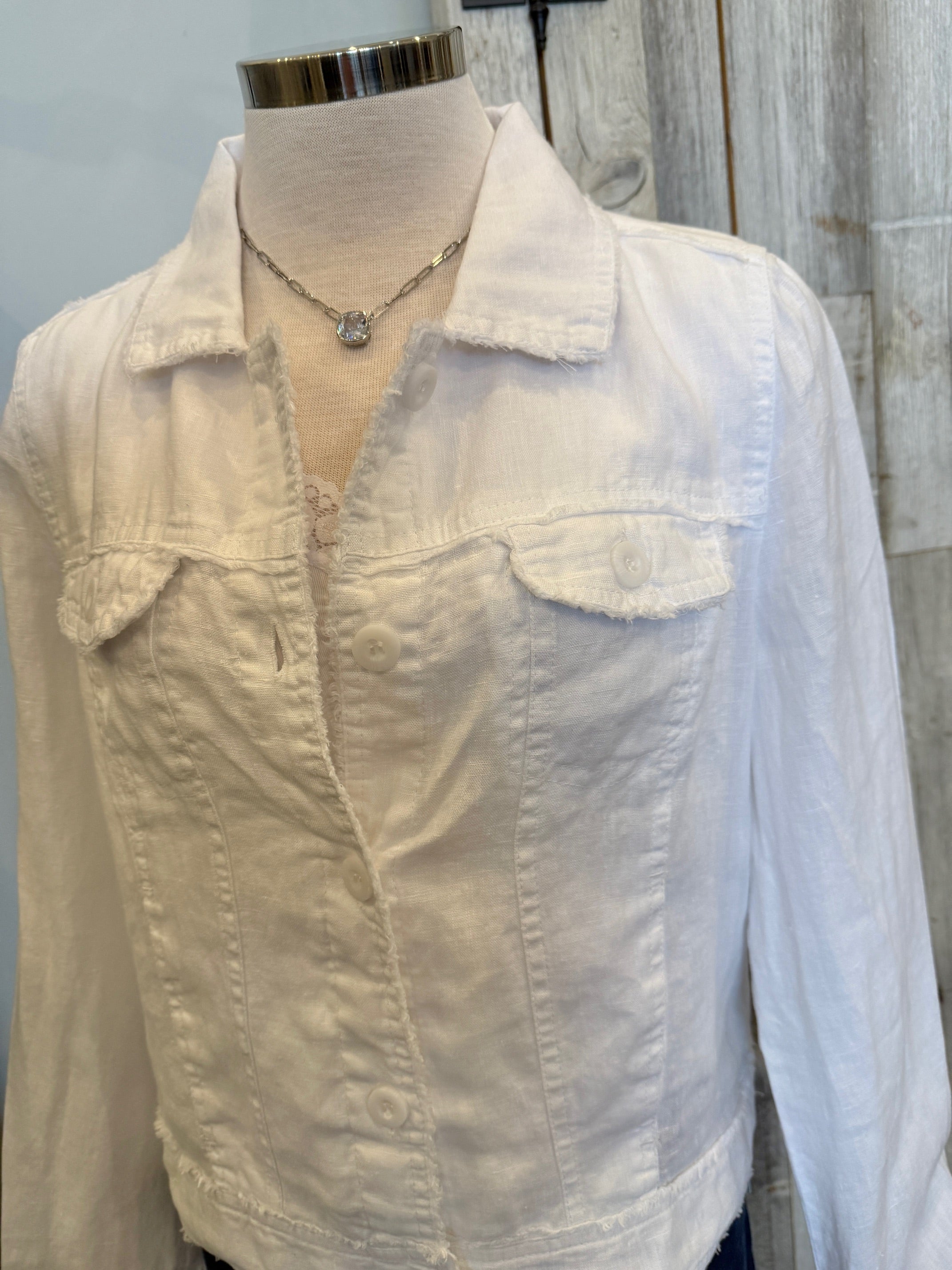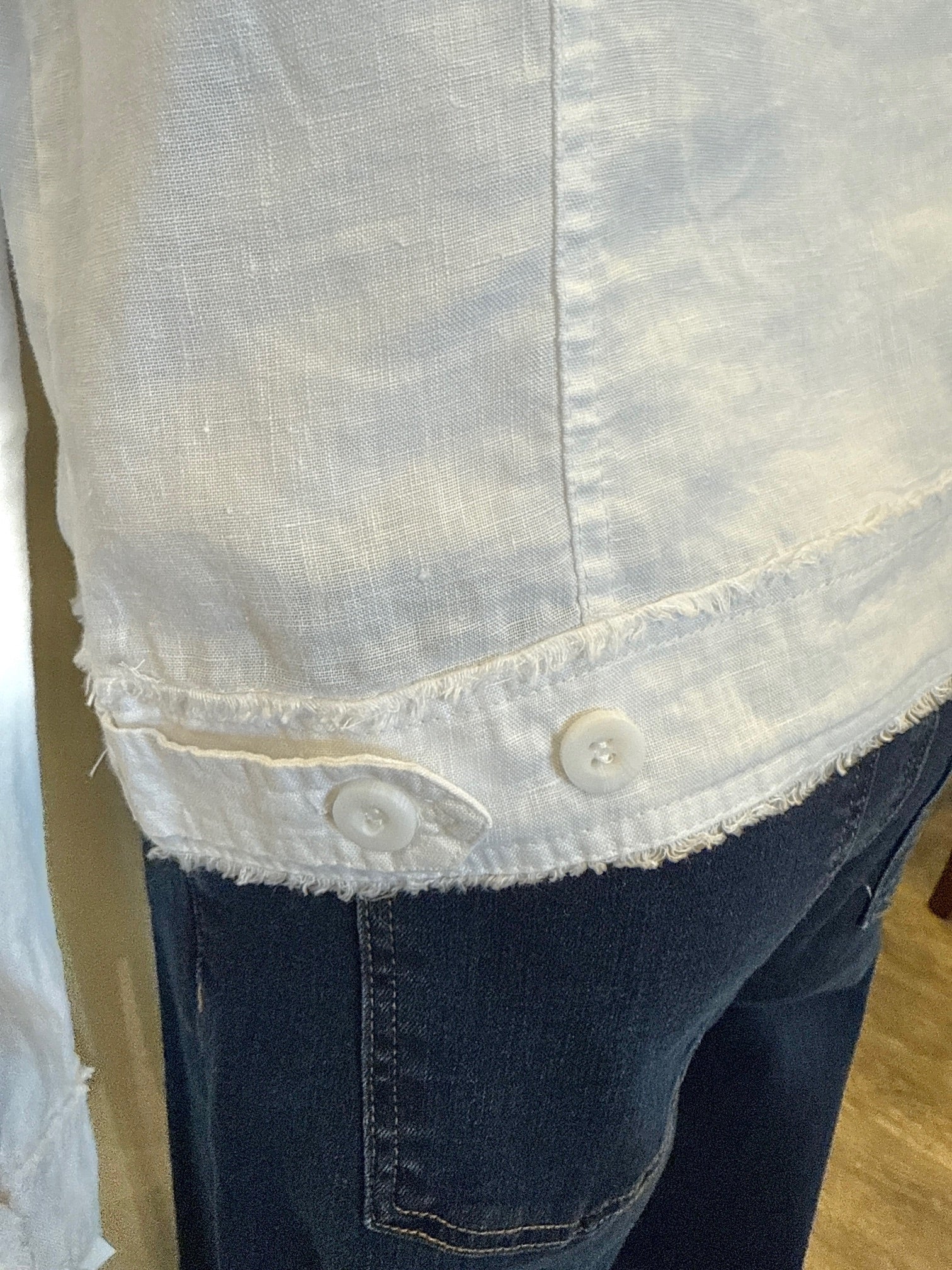 Lightweight and effortlessly stylish, this 100% linen layer is perfect for warm days and breezy evenings. The relaxed fit and classic button-front design flatter every figure, while modern frayed edges add a touch of laid-back charm. Finished with two chest pockets and easy machine-wash care because style should be simple.