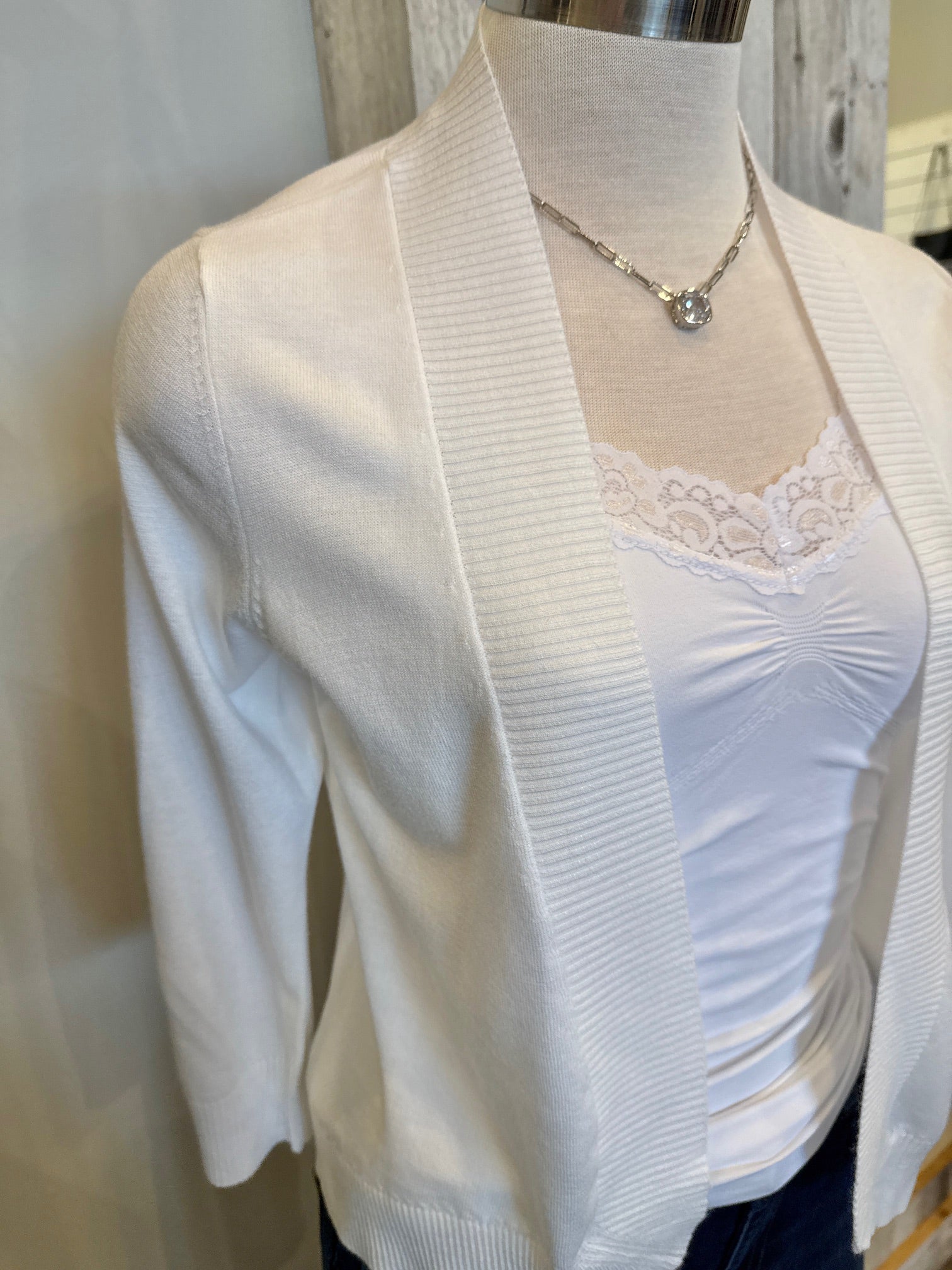 A best-selling item, year after year! This light weight cardigan sweater is the perfect layering piece. We recommend wearing these over a strapless tank or dress.