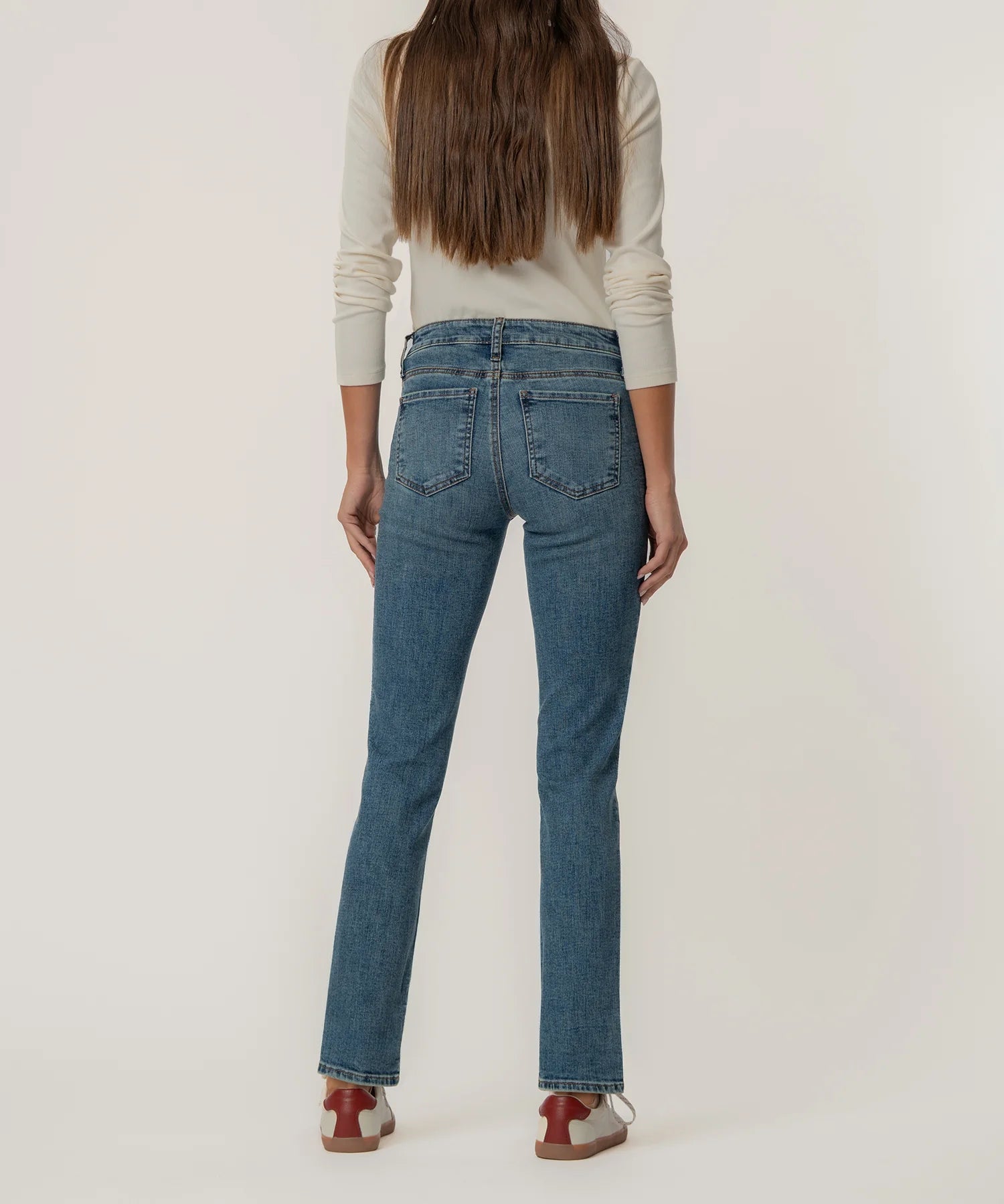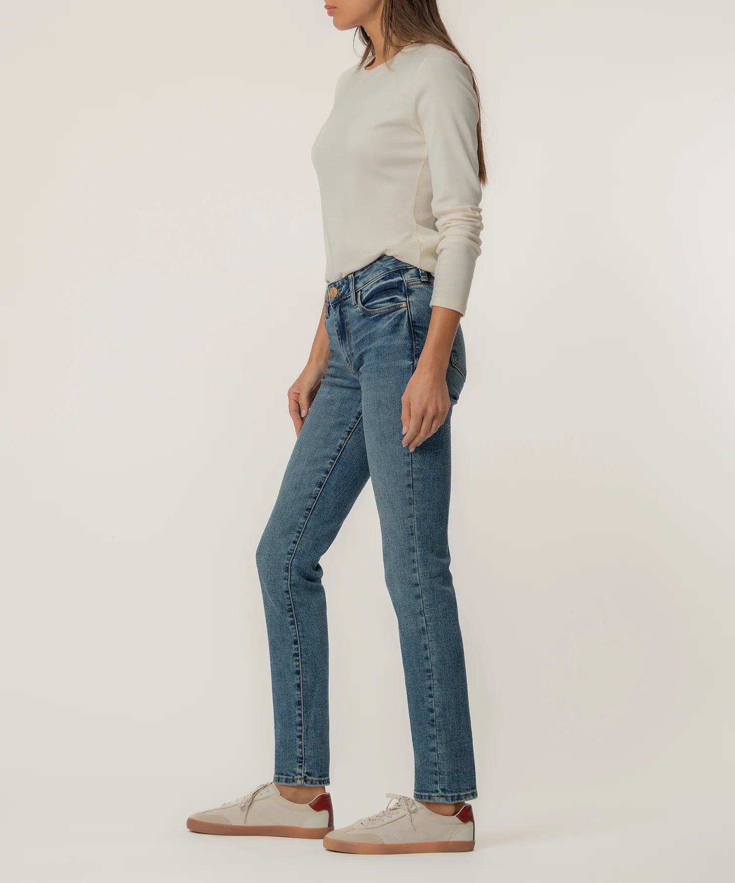 These mid-rise boyfriend jeans in a relaxed fit and classic medium wash are made from super stretchy fabric for ultimate comfort. Easily roll them up or down to switch up your look from casual to cool in seconds. Perfect for laid-back days with effortless style.