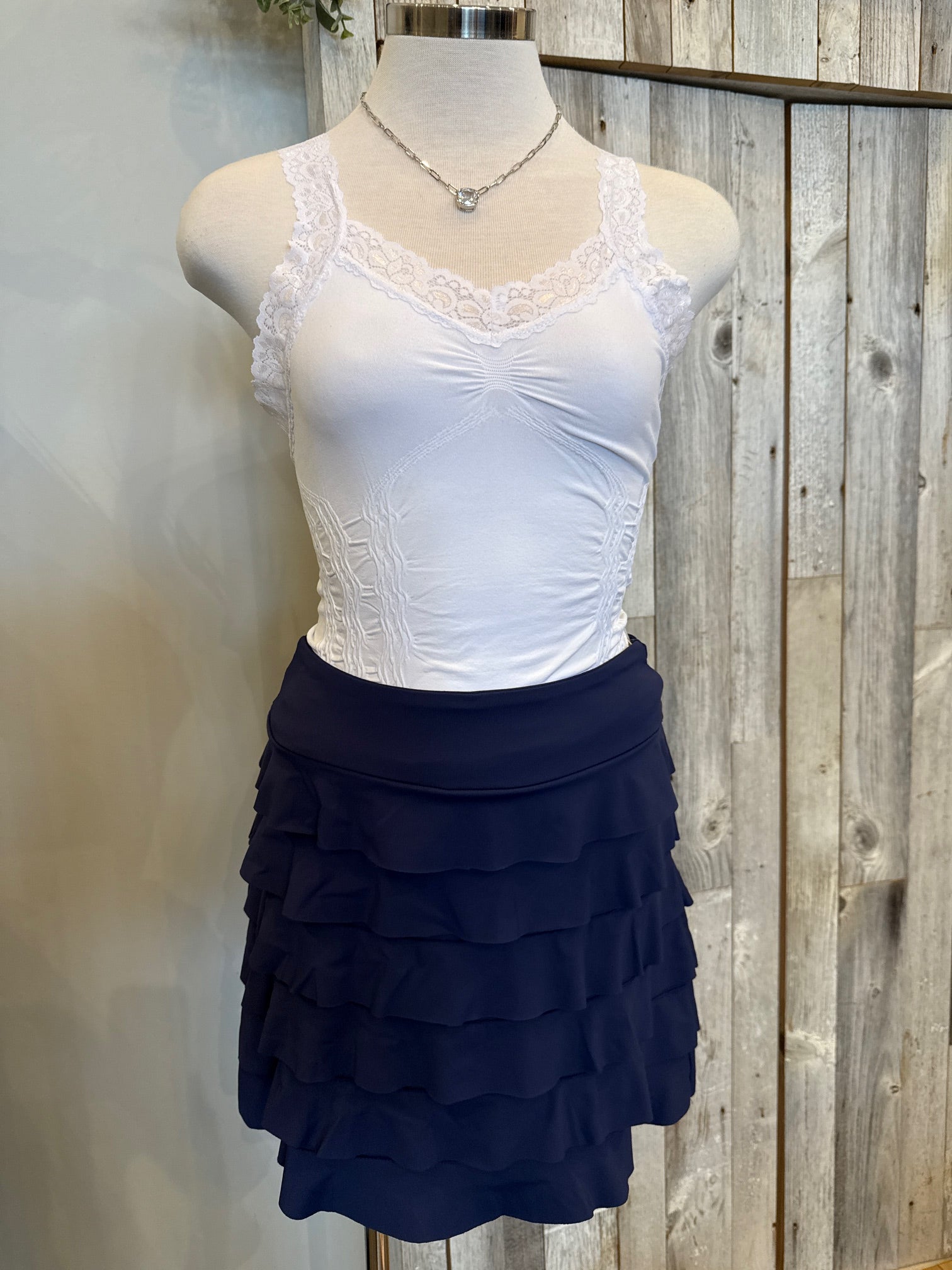 Lulu B's Cha Cha Skort combines athletic functionality with everyday versatility. Crafted from a durable 92% nylon and 8% spandex blend, this pull-on style features built-in shorts for secure coverage and movement. Pre-shrunk for lasting fit, the 13-inch length offers a modern, flattering silhouette. Perfect for active days or casual wear.