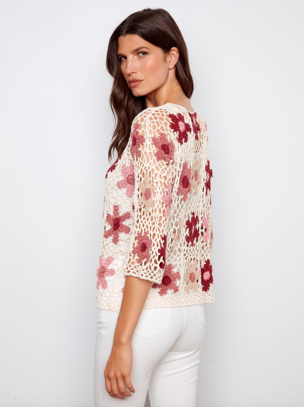 Charlie B Handcrafted Floral Crochet Top