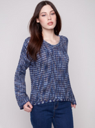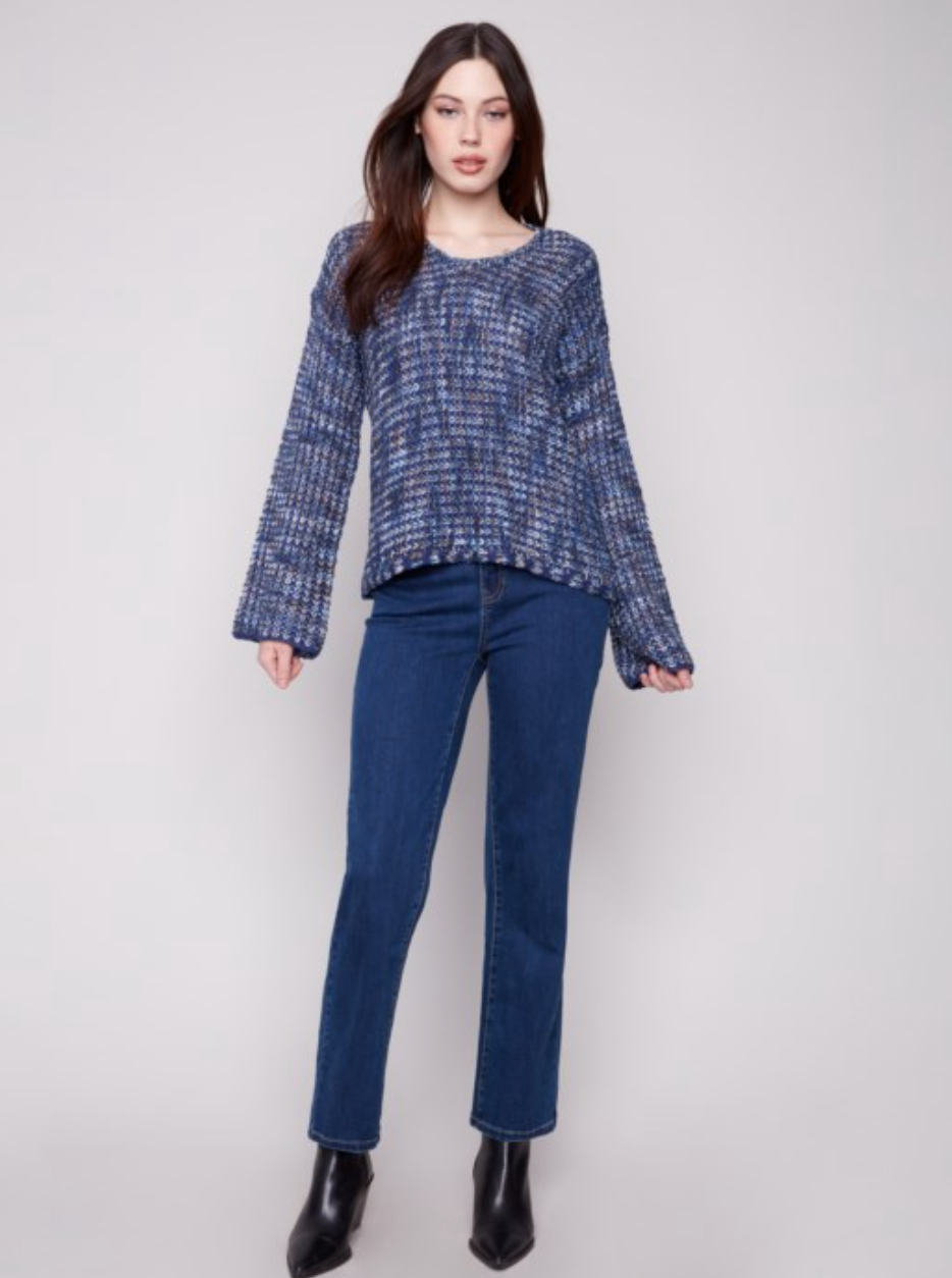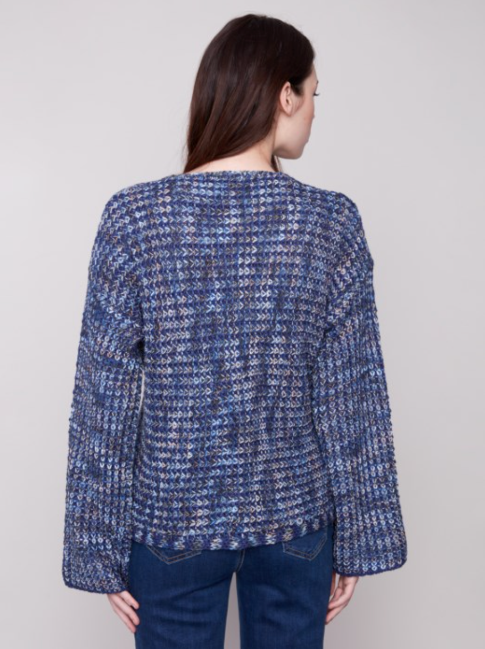 Novelty Yarn Melange Crochet Drop Shoulder Sweater