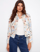 Elevate your seasonal wardrobe with this Charlie B printed linen blend jacket—a versatile layer that transitions effortlessly from day to evening. The breathable linen composition offers natural comfort and movement, while the distinctive print adds visual interest to any outfit. Perfect for layering over dresses or pairing with tailored trousers, this jacket delivers both style and practicality for the modern woman.