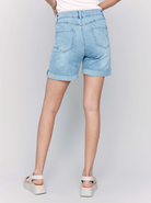 Timeless denim shorts with a polished rolled cuff detail that elevates casual styling. The structured fit offers versatility for layering with tees, tanks, or lightweight tops. Perfect for warm-weather wardrobes seeking a refined, effortless look that transitions seamlessly from day to evening.