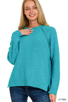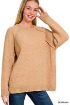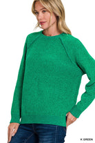 Crafted from soft chenille yarn, this raglan sweater delivers effortless comfort with its relaxed silhouette and dropped shoulders. The textured fabric adds visual interest while maintaining a versatile neutral palette that pairs seamlessly with your everyday wardrobe. Perfect for layering or wearing solo during cooler months.