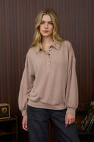 Elevated layering essential with a structured collar and functional half-snap placket. This long-sleeve knit top delivers versatile styling—wear it buttoned for polished sophistication or open as a lightweight layer. The quality knit construction ensures comfortable all-day wear while maintaining its shape.