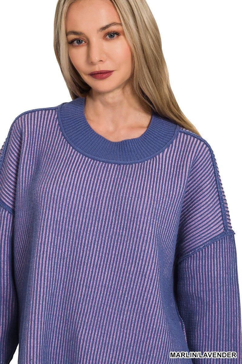 EXPOSED SEAM TWO-TONE SWEATER