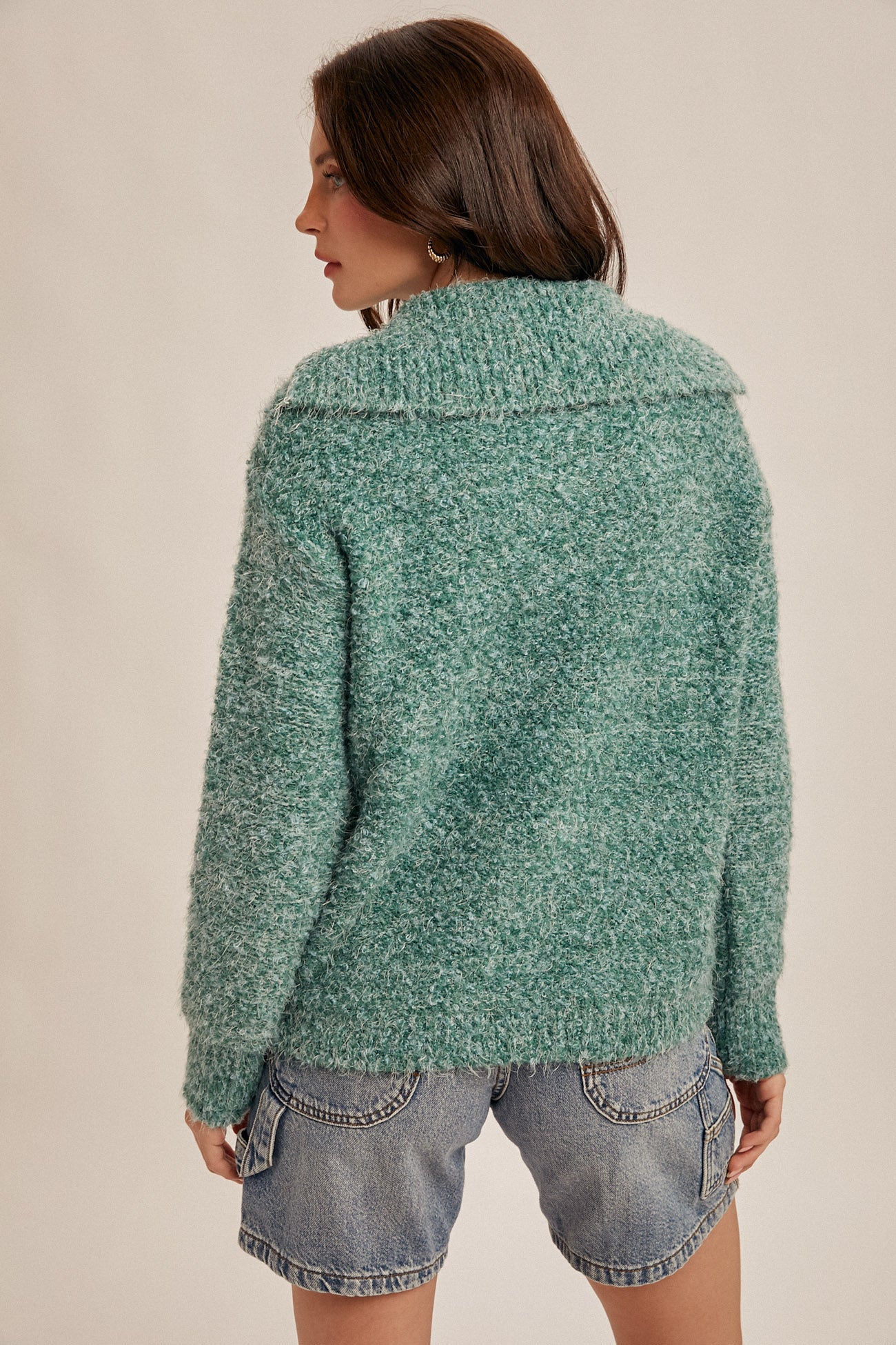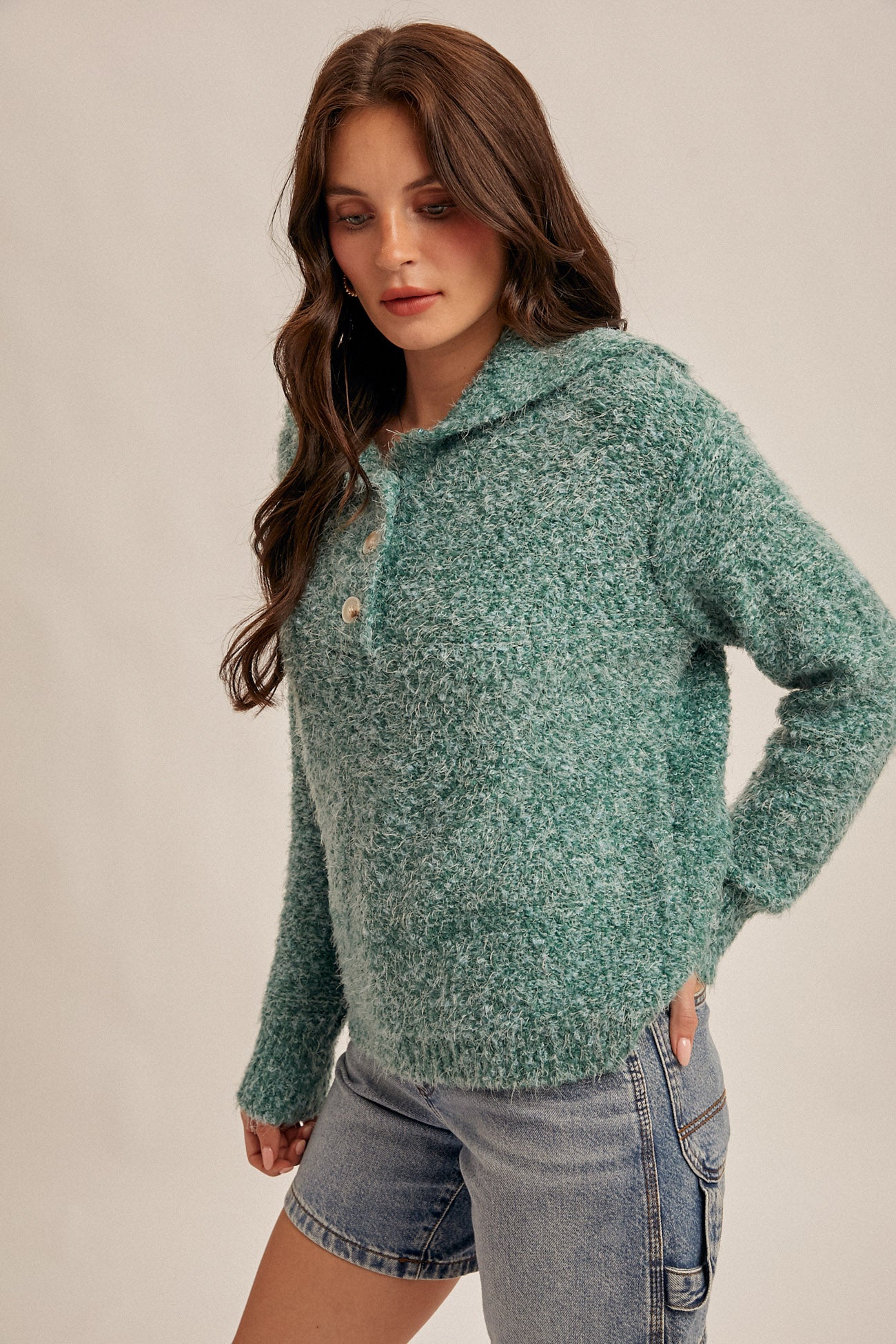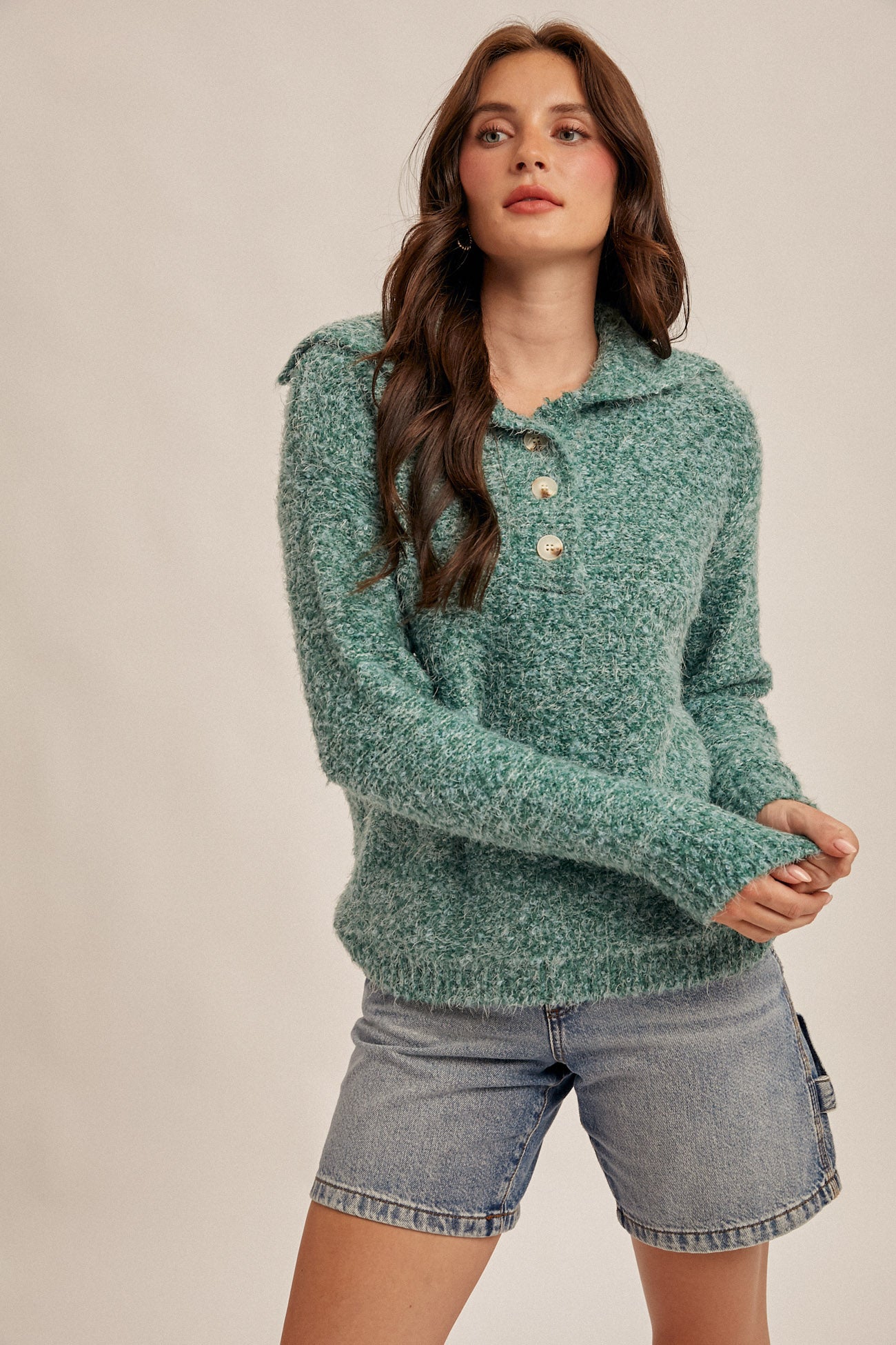 Eyelash Yarn Mixed Fuzzy Half Button Pullover