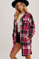 Layer with ease in this versatile flannel plaid shacket. The longline silhouette offers extended coverage while the classic plaid pattern works seamlessly with your everyday wardrobe. Crafted from soft flannel fabric, it transitions effortlessly from casual to polished—wear it open over a tee or buttoned up as a standalone piece. A wardrobe essential that delivers both comfort and style.