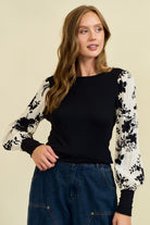 Elevate your everyday wardrobe with this sophisticated knit top, featuring an intricate floral jacquard pattern paired with contrasting sleeves for visual interest. The refined jacquard weave adds texture and dimension, while the contrast detailing creates a modern silhouette that works seamlessly from office to weekend. Crafted for comfort and style, this piece is a versatile essential that layers beautifully or stands alone as a polished statement.