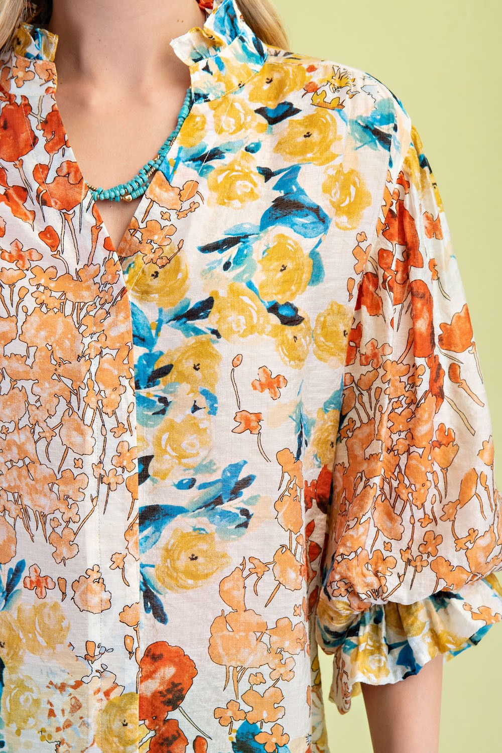 Feminine floral print meets structured tailoring in this button-down blouse. Voluminous balloon sleeves add contemporary flair while the classic front closure keeps styling versatile. Crafted for layering or standalone wear, this piece transitions effortlessly from office to weekend. The print detail elevates any neutral base, making it a wardrobe essential for those who value both polish and personality.