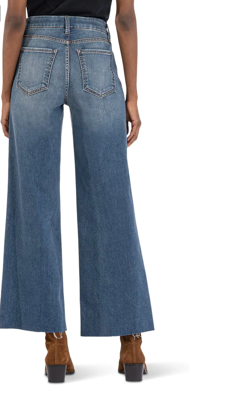 Elevate your style and comfort with this High Rise Fab Ab Wide leg jean. Designed to hug your curves with a flattering high-rise fit, these wide-leg pants offer a breezy, fab look perfect for any occasion. Move freely and feel great all day long in this effortlessly chic wardrobe essential.