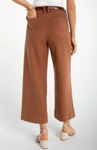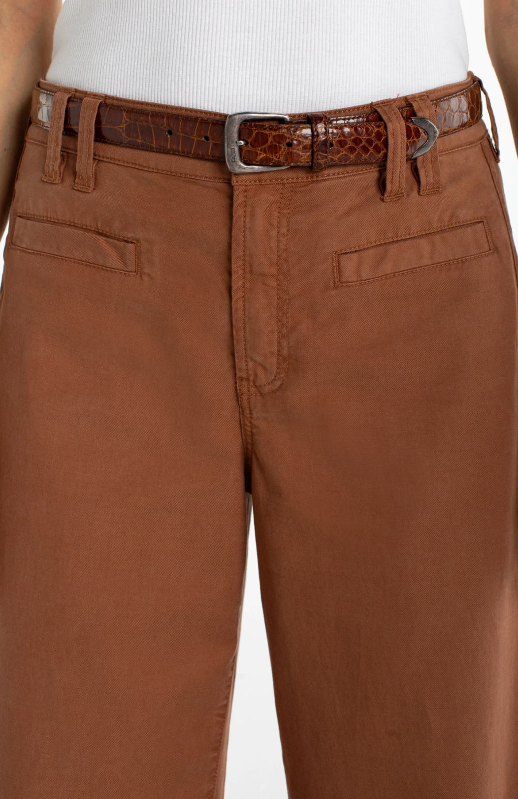 A modern wide leg with a crisp, cropped silhouette. This high-rise style creates a long, clean line through the waist and hip before opening into an easy, confident shape. Finished with sleek welt pockets in front and classic patch pockets in back for a refined yet effortless feel.