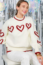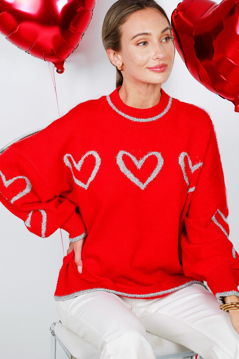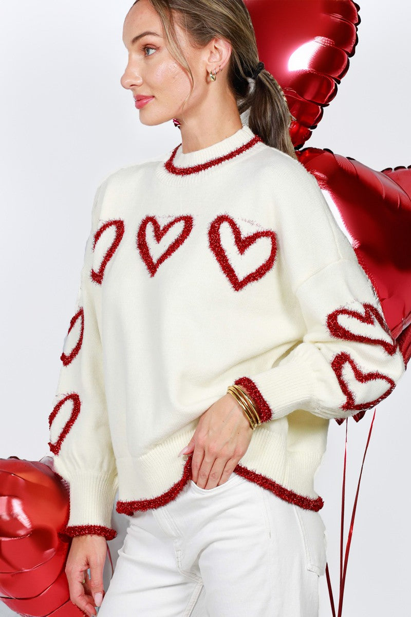 Metalic glitter yarn heart shape detail knit sweater