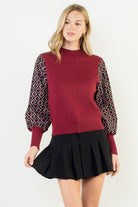 This Mixed Media Knit Top brings together different textures for a fun, fresh look. Its unique fabric combo pairs perfectly with cool, eye-catching sleeves that add a playful twist to your outfit. Comfortable and stylish, it’s the perfect pick for turning heads and feeling great all day long.