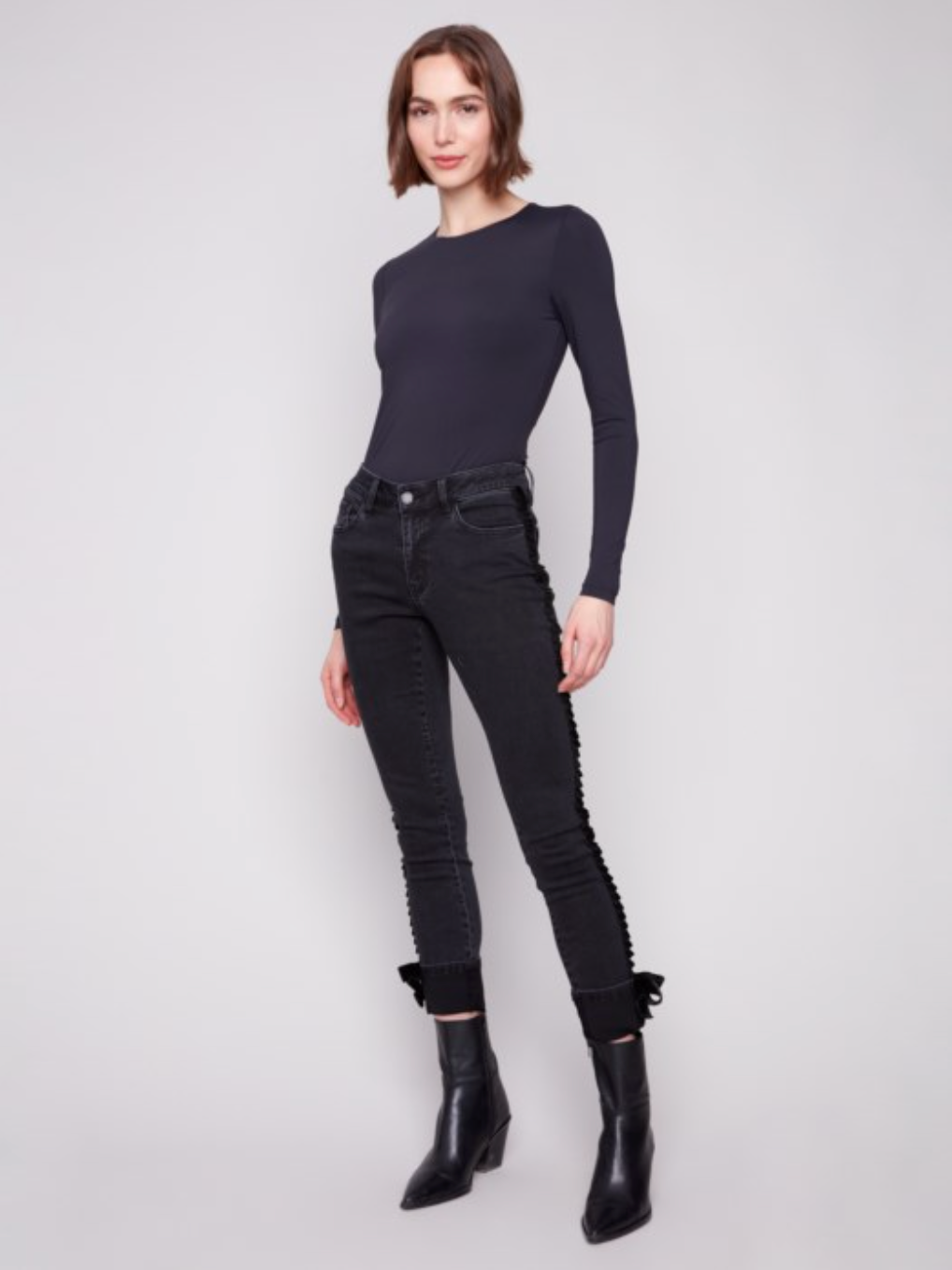 Slim Leg Jeans With Velvet Bow