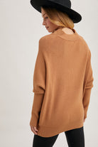 Super-soft cozy sweater featuring a volume in the body with a slouchy funnel neckline to contrast with fitted sleeves and relaxed silhouette.
