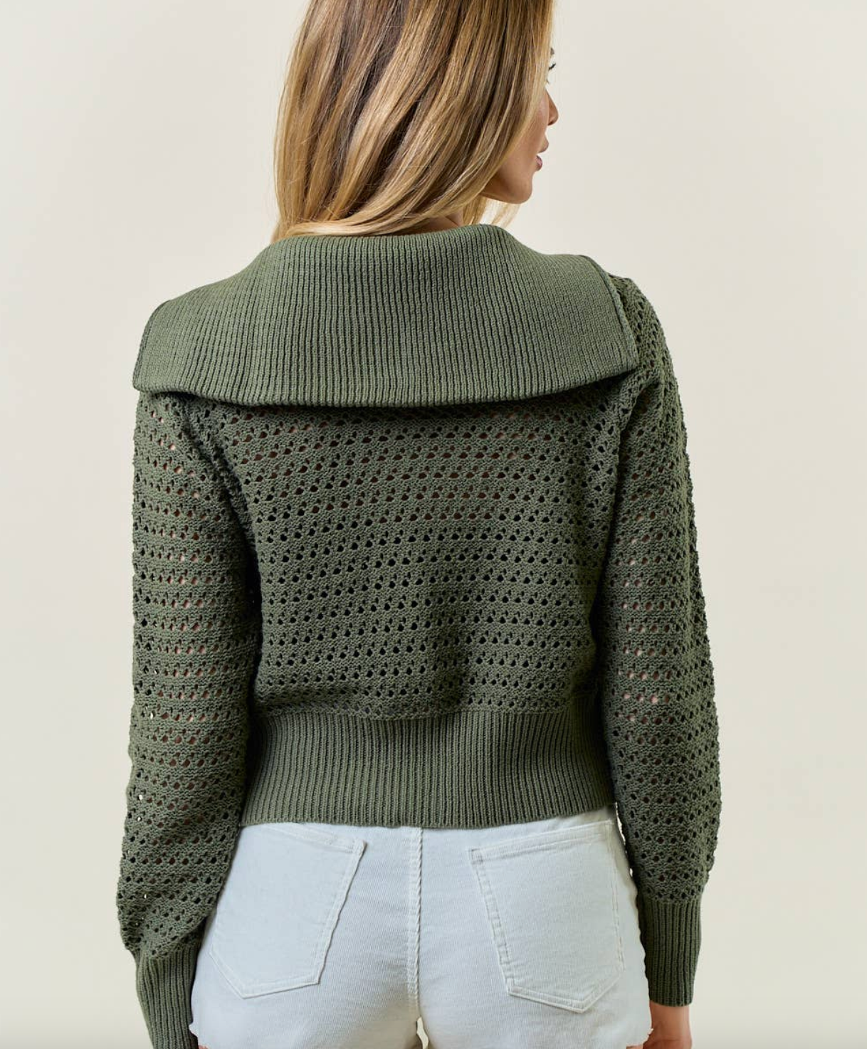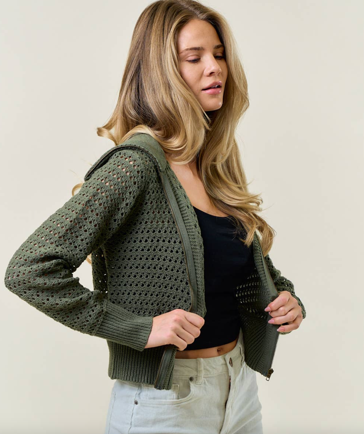 Zip up Pointelle Open Knit Sweater Jacket