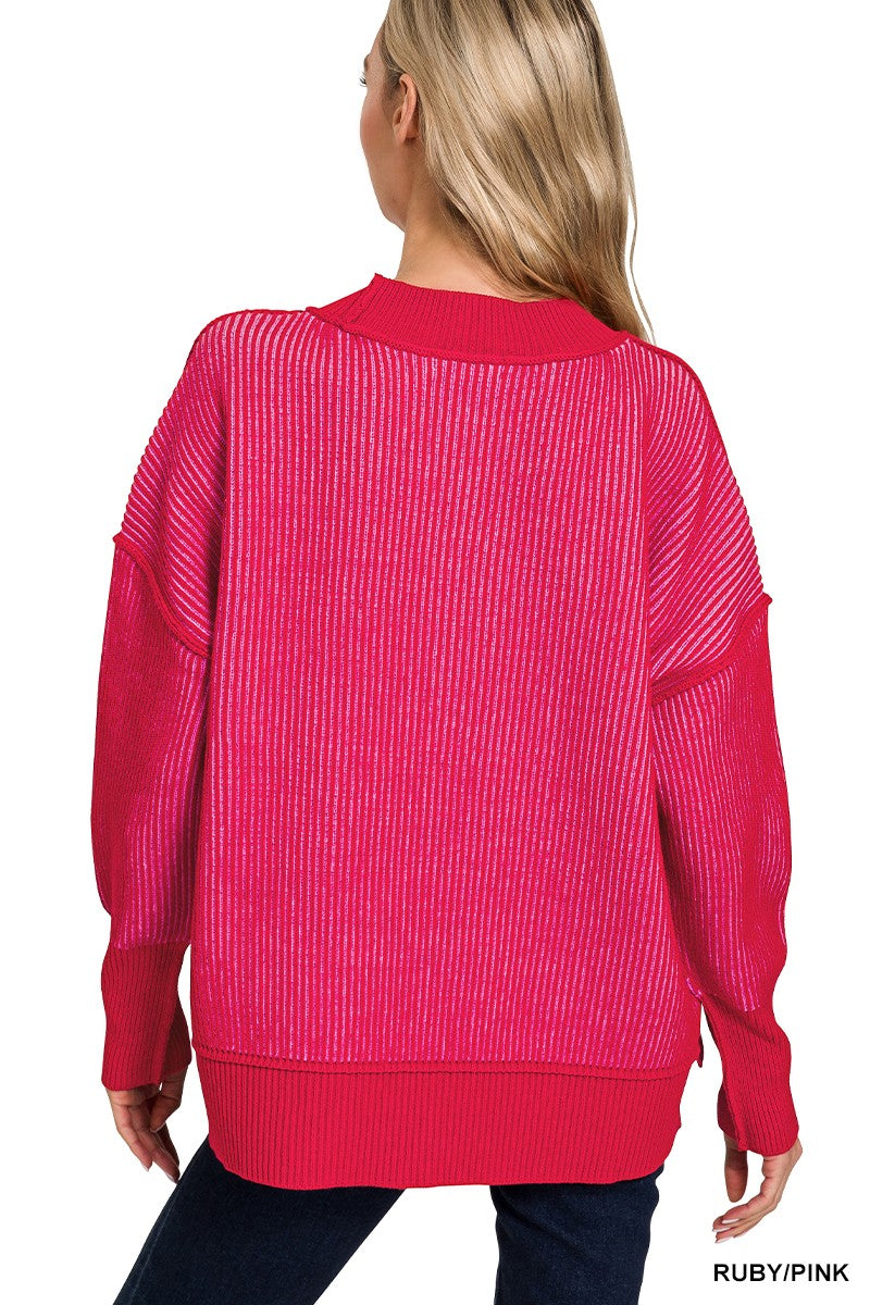 Exposed seam two tone sweater