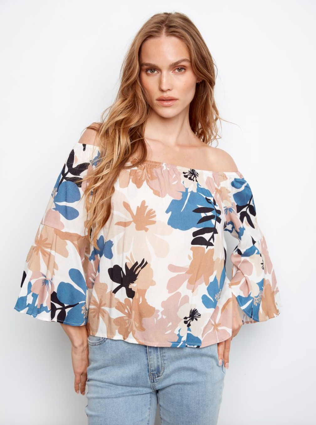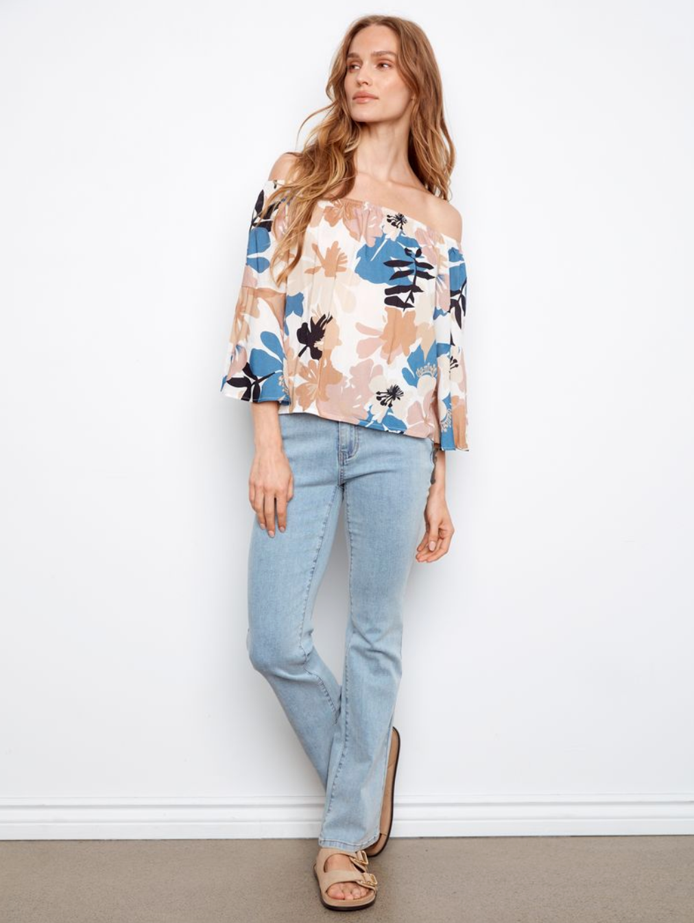 Charlie B Printed 3/4 Sleeve Off-Shoulder Blouse
