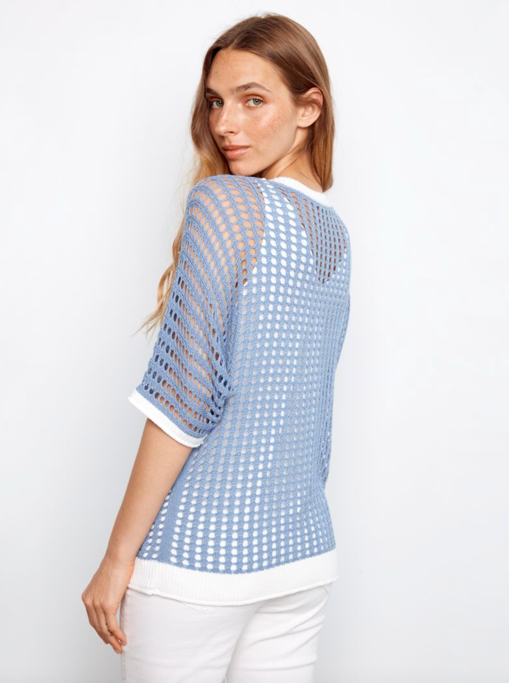 Charlie B Floral Fishnet Dolman Sweater