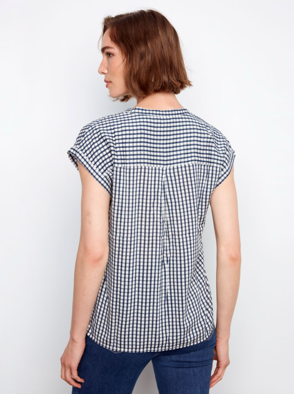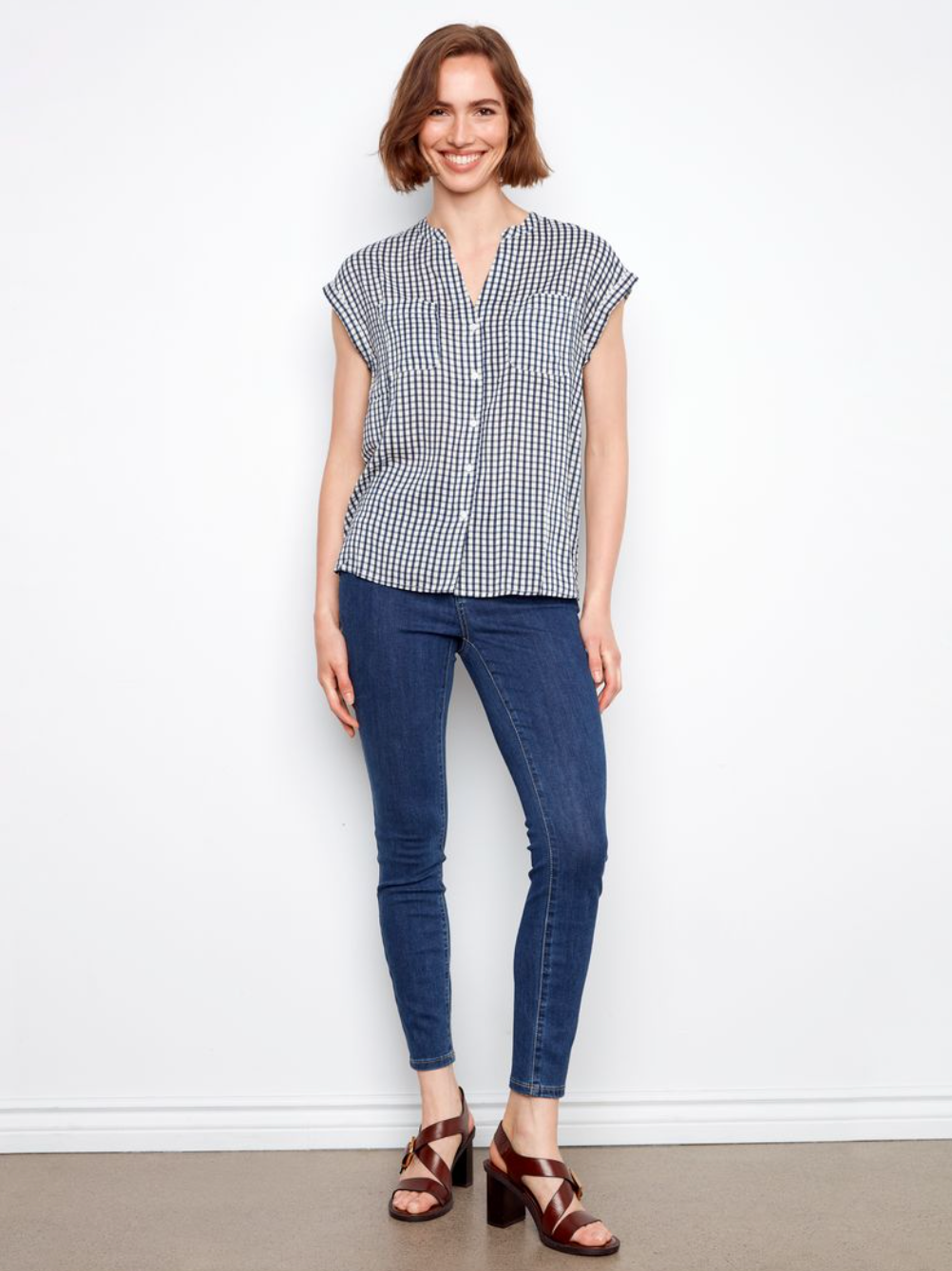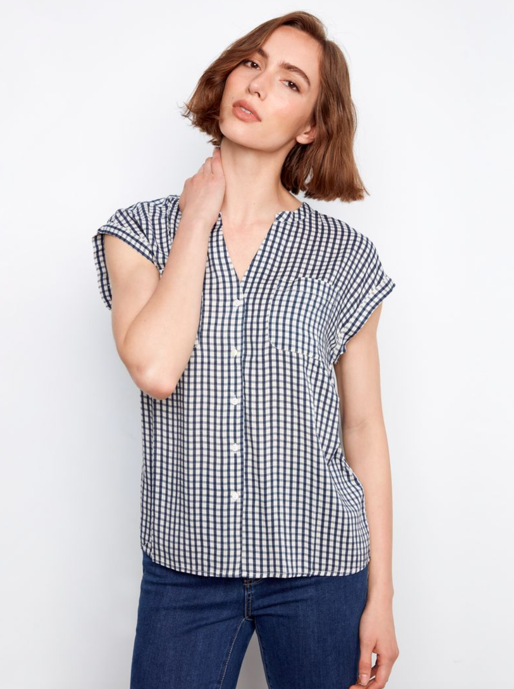 Charlie B Printed Gingham Button-Up Blouse