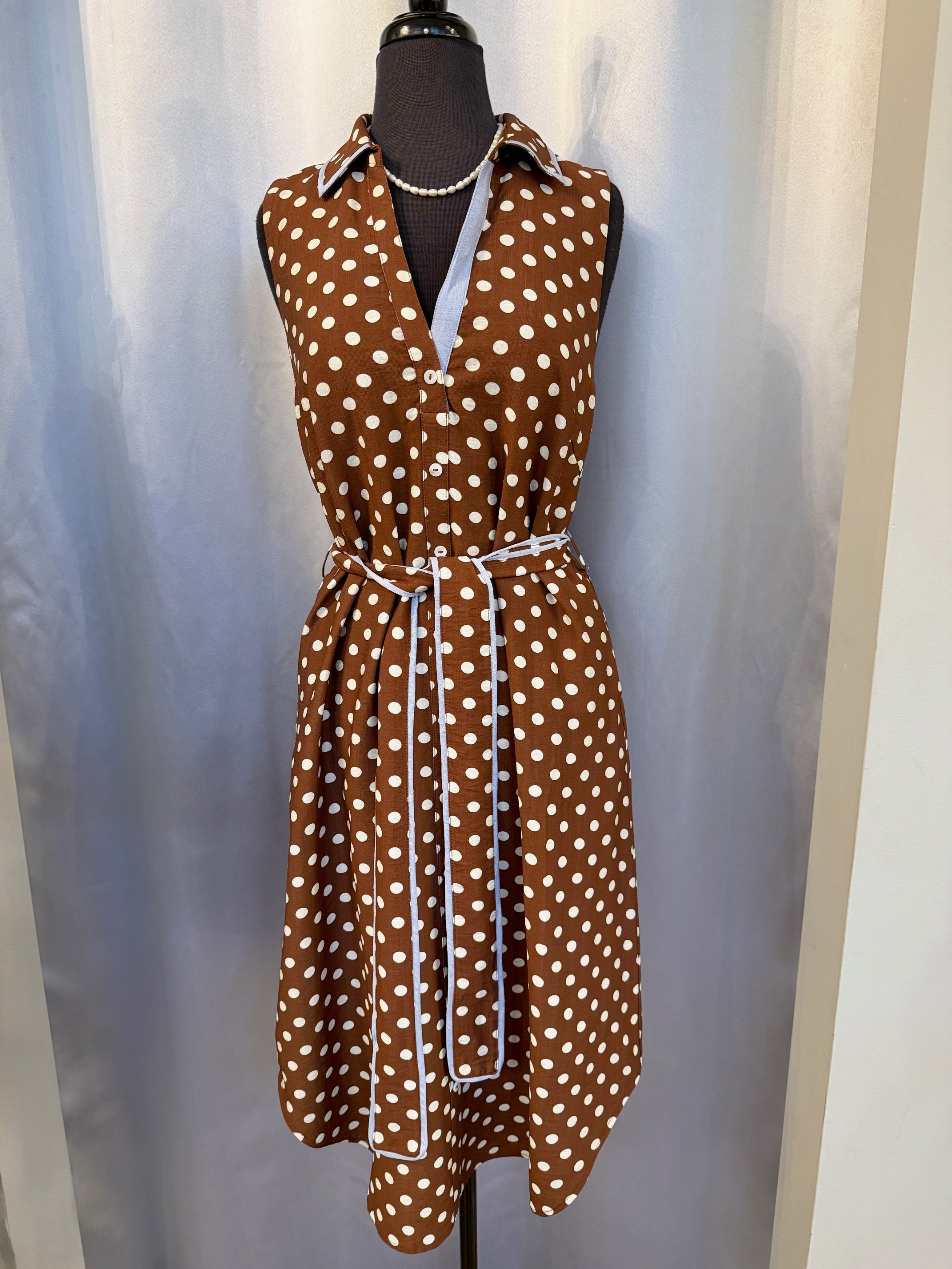 Sleeveless Polka Dot Button Down Dress