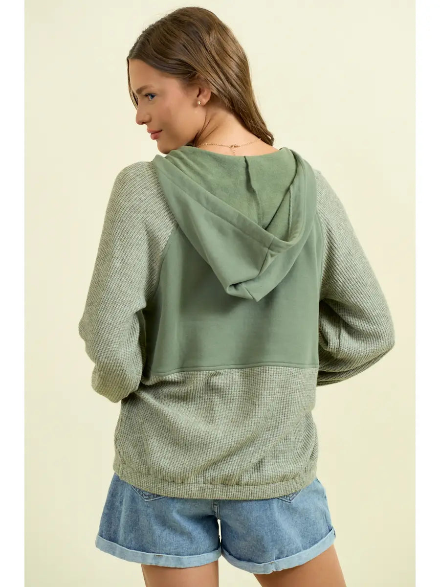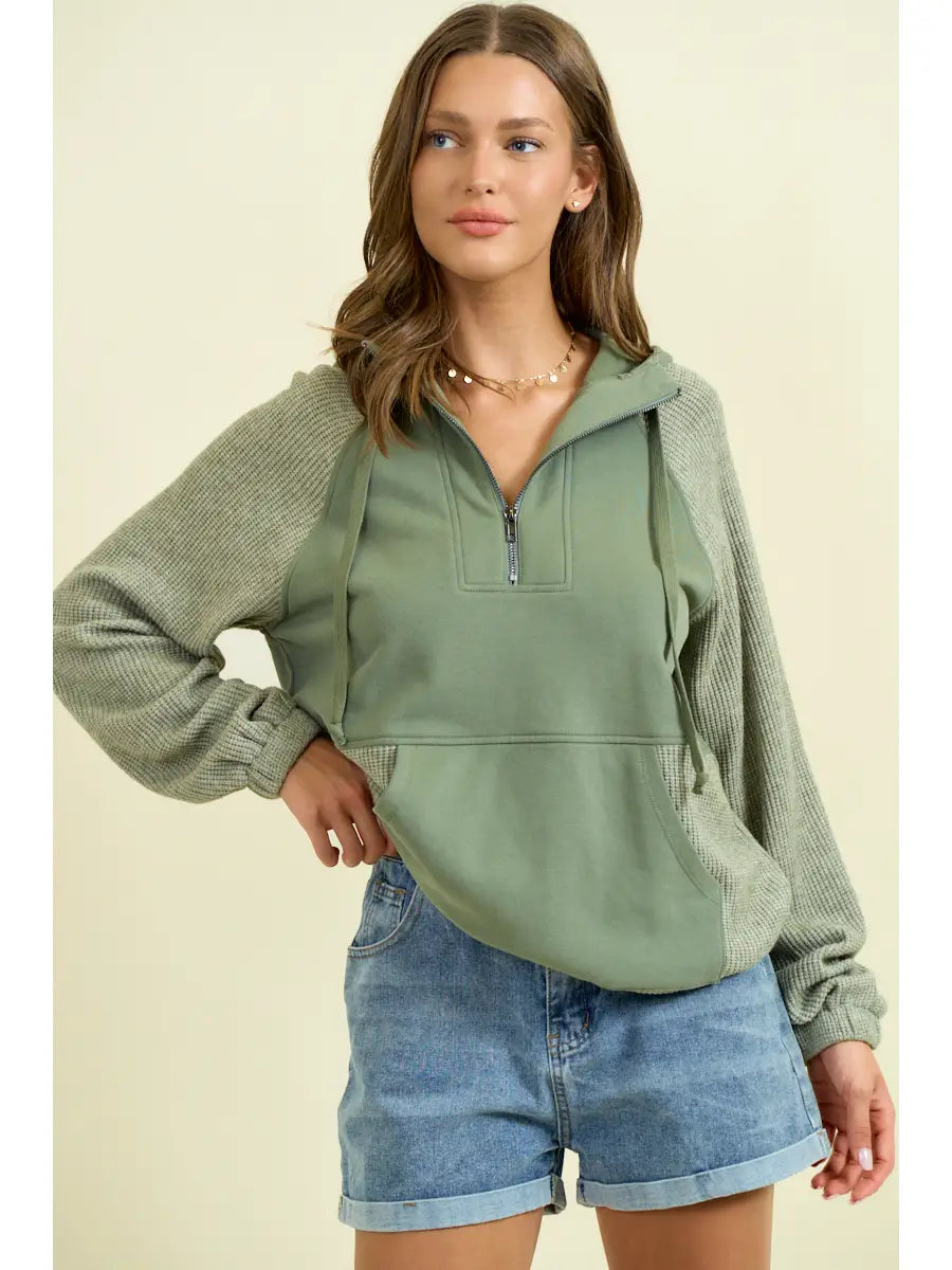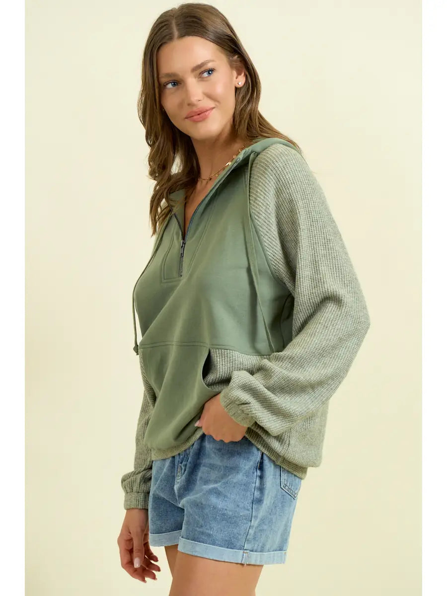 Fleece & Soft Knit Rib Mixed Half Zip Up Hoodie