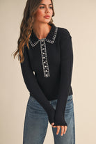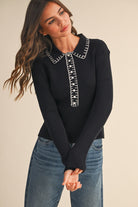 Elevated layering piece featuring a structured collar and fine ribbed knit construction. Contrast stitching along the seams adds visual interest and refined detail. Versatile enough to wear solo or layered under jackets for a polished, put-together look. The ribbed texture provides subtle texture while maintaining a clean silhouette.
