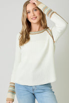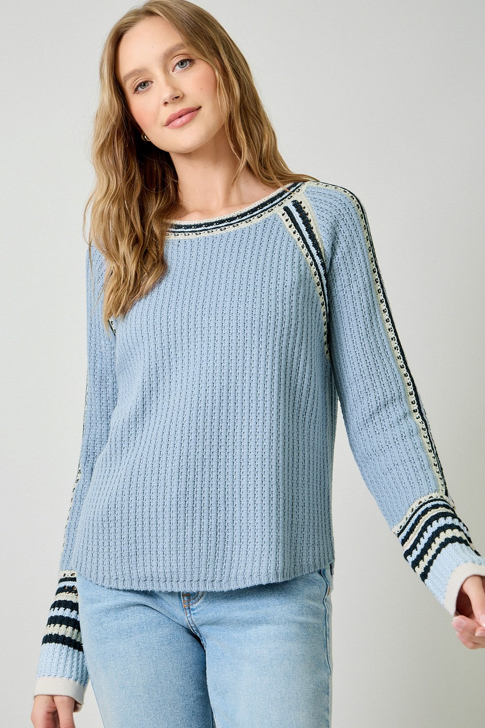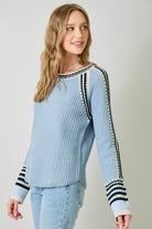 This Raglan Sleeve Trim Detail Sweater brings a fun twist to your cozy wardrobe. Featuring a classic round neck and playful hi-lo hem, it adds a flirty flair to your look. The long sleeves with contrast stripes give it a sporty edge, perfect for mixing comfort with style on any casual day.