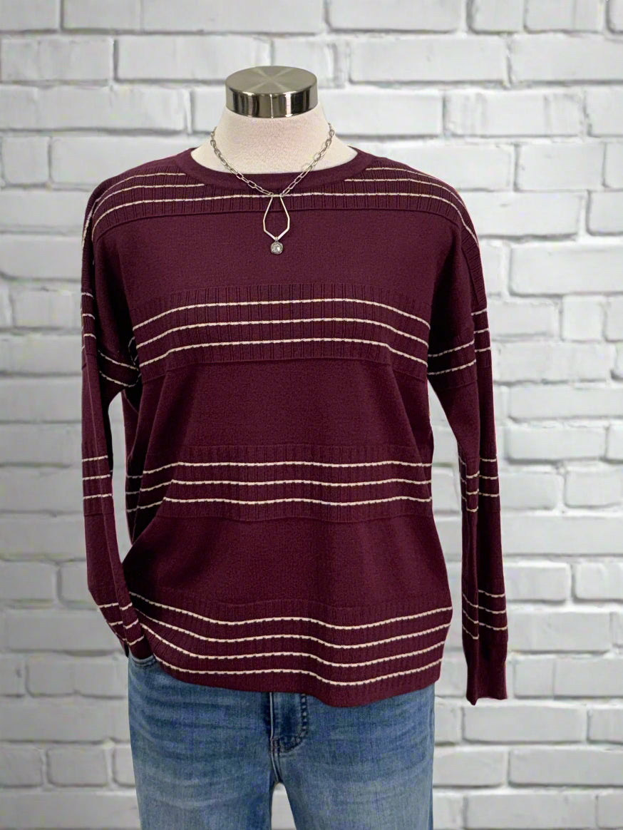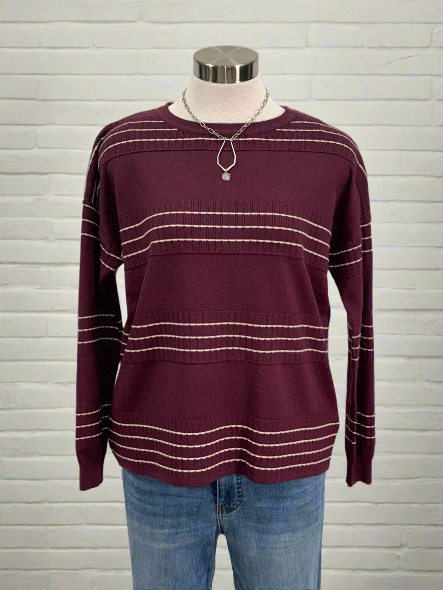Add a splash of fun to your wardrobe with this stitch striped long sleeve crew neck pullover sweater. Its cozy fit and vibrant stripes make it perfect for playful days and casual outings. Stay comfy and stylish while turning heads wherever you go!