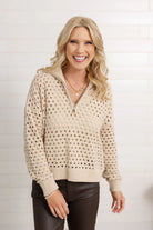 sweater 1/2 zip open knit