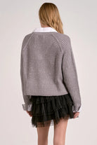 Add a touch of shimmer to your cozy days with this Grey Sparkle Sweater. This playful sweater combines soft grey fabric with subtle sparkle details, making it perfect for brightening up any casual outfit. Stay comfy and stylish whether you're lounging at home or out with friends!