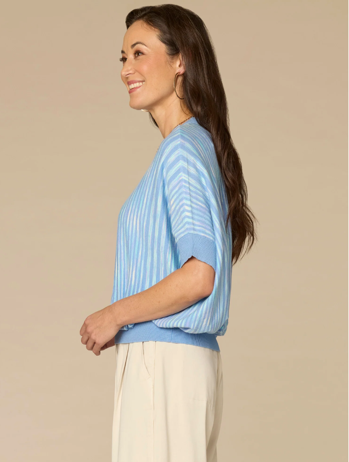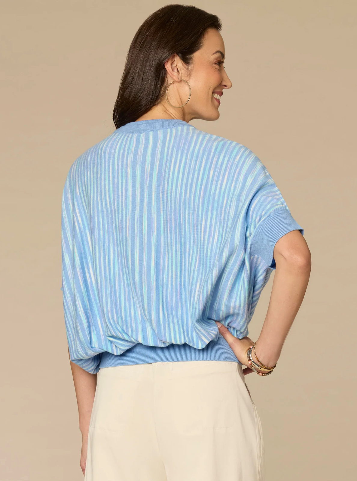 Effortless layering piece featuring a relaxed dolman silhouette and striking two-tone space dye pattern. The soft knit construction drapes beautifully while the extended sleeves create a modern, flowing aesthetic. Perfect for transitional seasons or styled over basics for added dimension. A versatile wardrobe essential that balances comfort with contemporary design.
