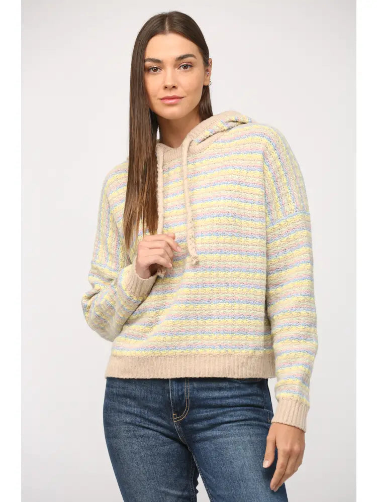 Hooded Texture Stripe Sweater