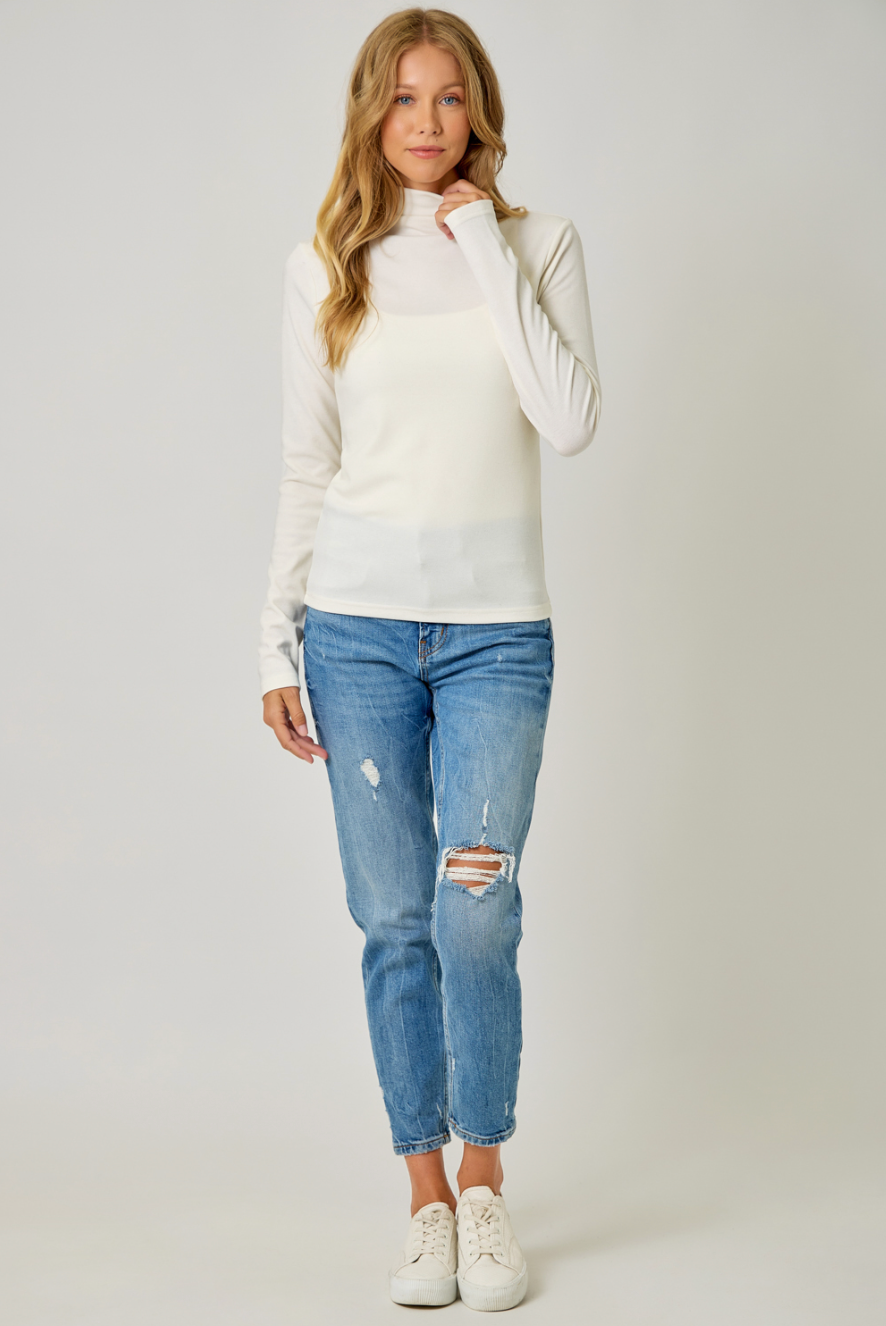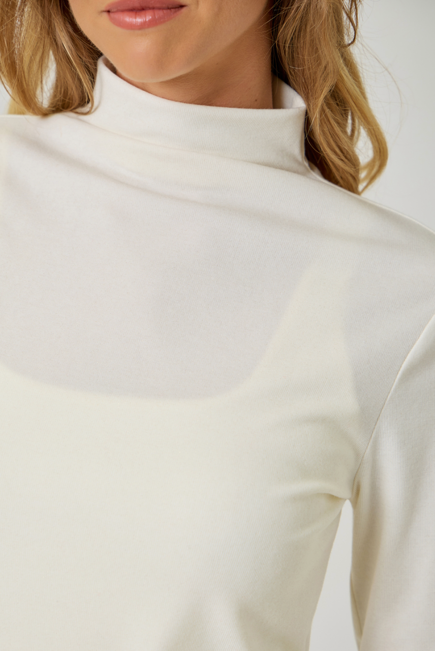This fitted knit top features long sleeves and a chic mock neck, perfect for adding a touch of sparkle to your day. Subtle gold lurex threads shimmer throughout, bringing a playful glow to your look without overpowering it. Cozy yet stylish, it’s a fun way to brighten up any outfit!