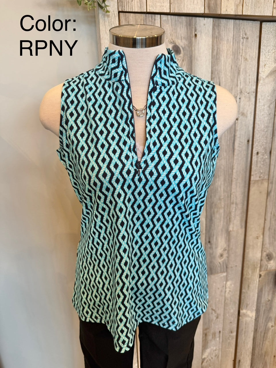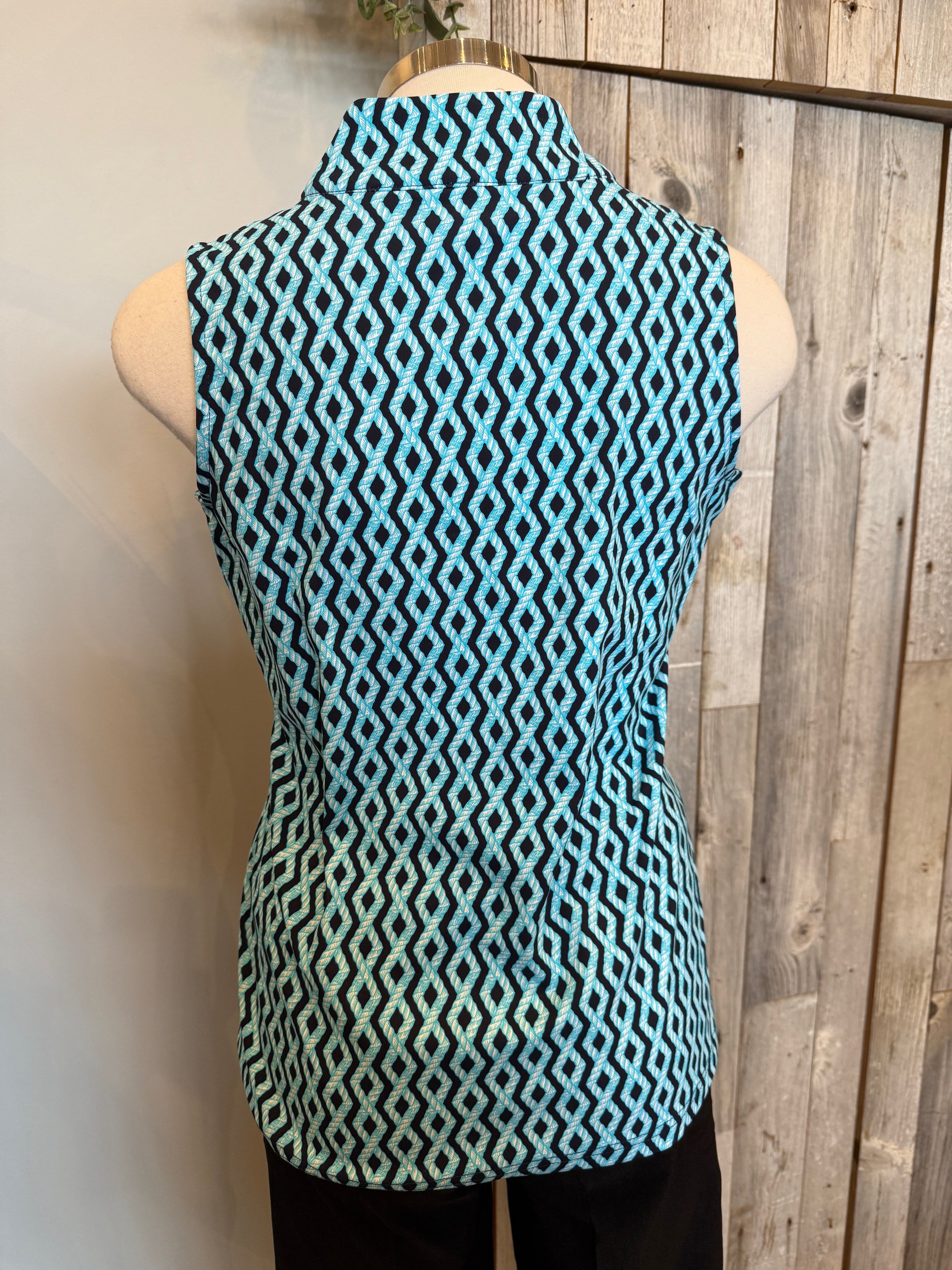 Lulu B Printed Sleeveless Zip Top