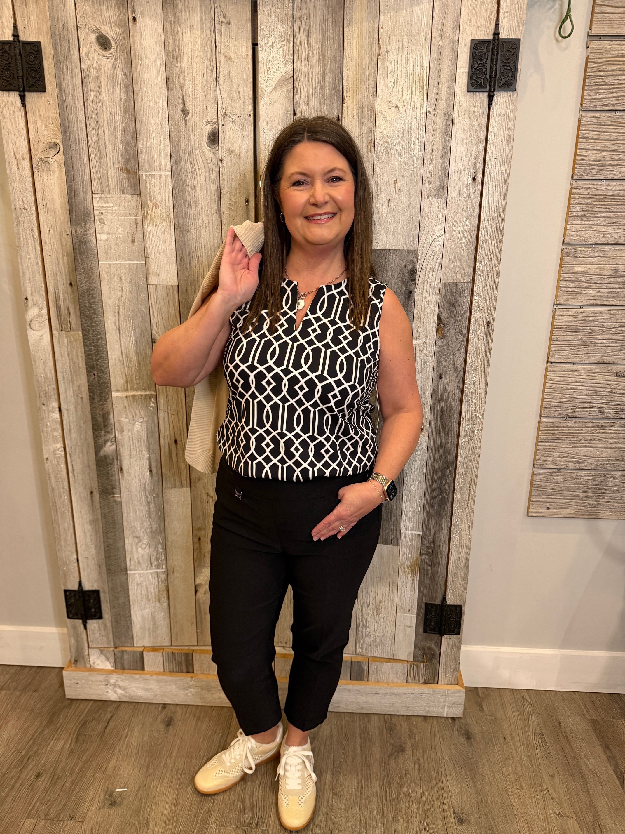 Lulu B's sleeveless keyhole top combines effortless sophistication with versatile styling. The printed design adds visual interest while the keyhole neckline detail elevates the silhouette. Perfect for layering or wearing solo, this piece transitions seamlessly from day to evening. Lightweight and SPF fabric.