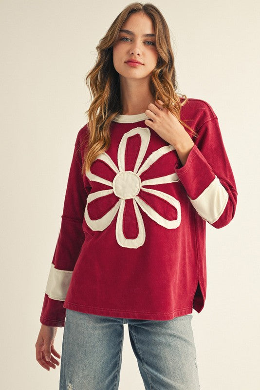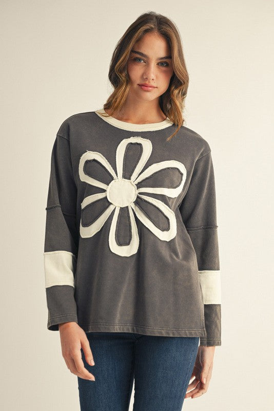 Embrace effortless charm with this floral patched top featuring playful raw cut edges. Its unique design adds a touch of whimsy to your look while keeping things comfortable and casual. Perfect for mixing and matching, this top brightens your wardrobe with a breezy vibe that’s as fun as it is stylish.