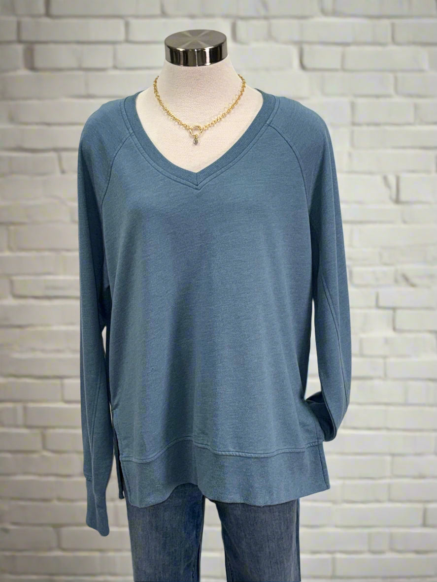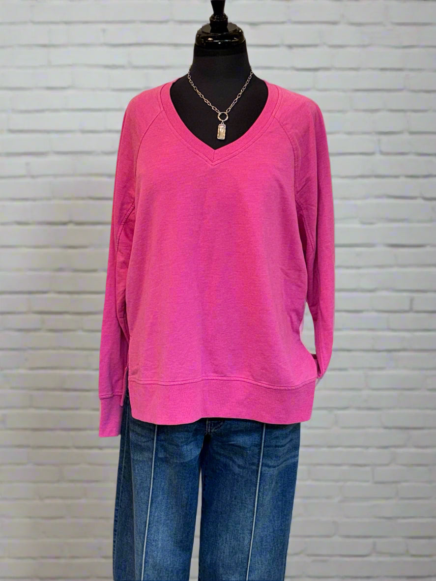 Get ready to cozy up in style with the Week Ender V Neck sweatshirt! Perfect for those laid-back days, its soft fabric and relaxed fit make unwinding feel like a treat. The flattering V-neck adds a playful twist to your casual look, making it easy to dress up or down. Whether you're lounging at home or out for a weekend adventure, this sweatshirt is your new go-to for comfort and charm.