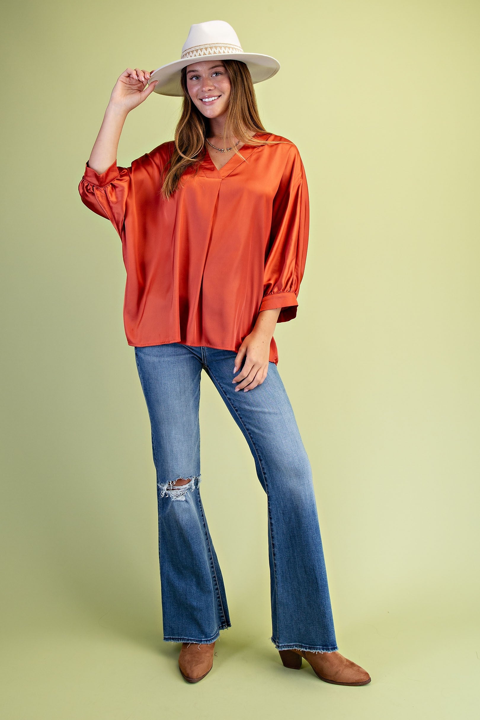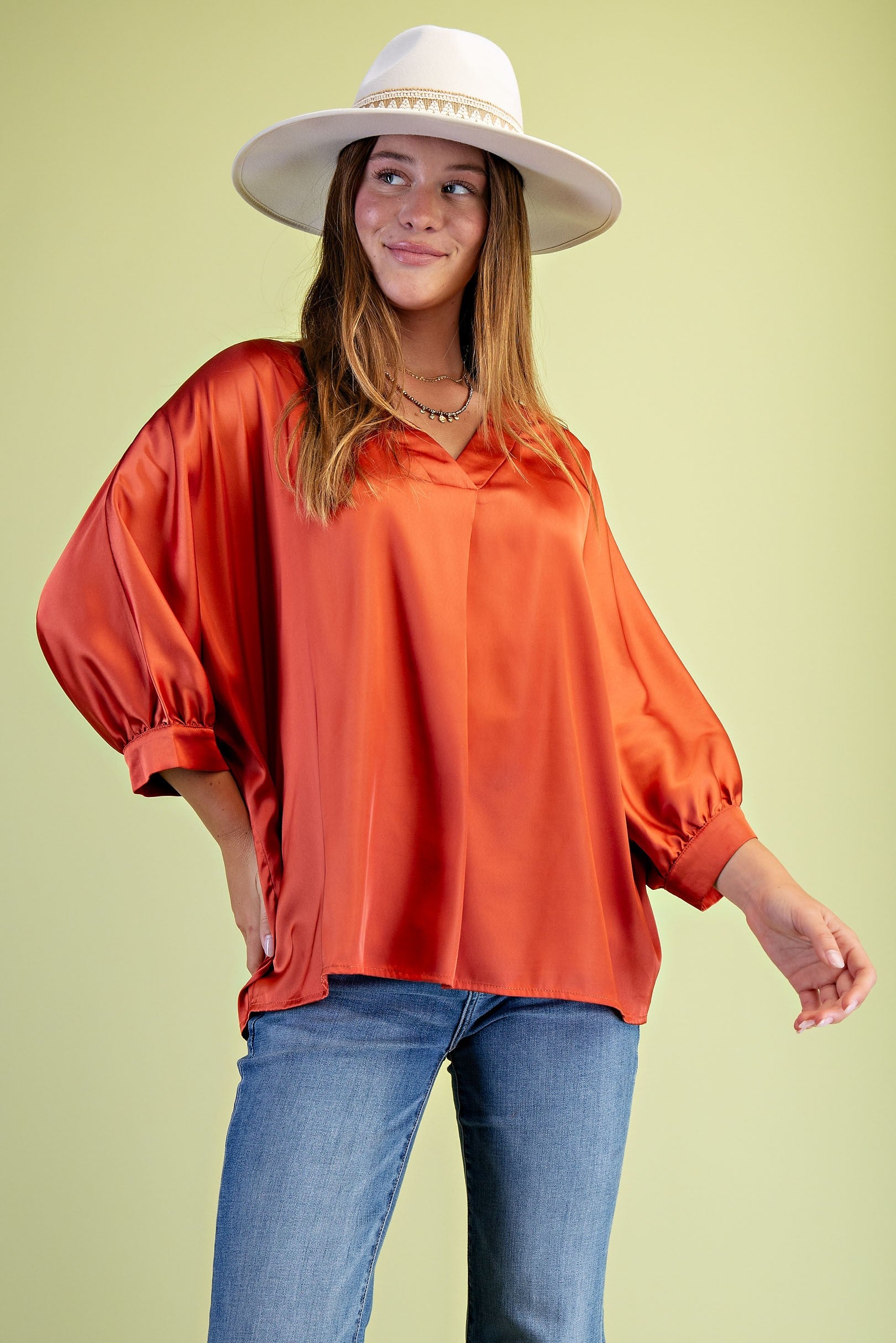 Satin V neck loose fit blouse