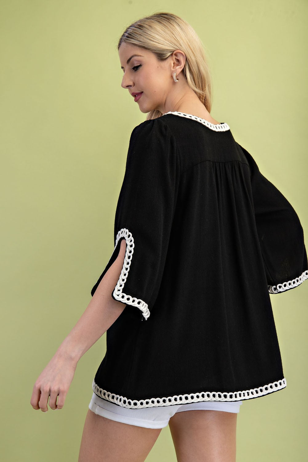 3/4 sleeve line tunic with embroidered details