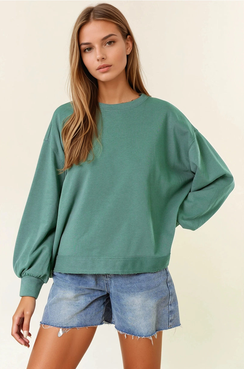 Round neck puff long sleeve oversized sweatshirt